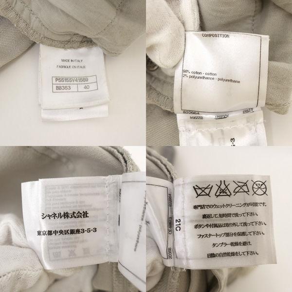 ・メーカー :CHANEL / シャネル・製品型番 :P55155V41569・サイズ :表記サイズ:40,ウエスト (約cm):76,太腿幅 (約cm):30 ,股上 (約cm):29,股下 (約cm):58,裾幅 (約cm):20,・色(柄)の系統:グレー・デザイン :(レディース)ボトムス/パンツ・素材 :コットン 他・付属品 :なし-------------商品状態-------------・ランク :B・詳細 :シミ・汚れ等、一般的な使用感があります。