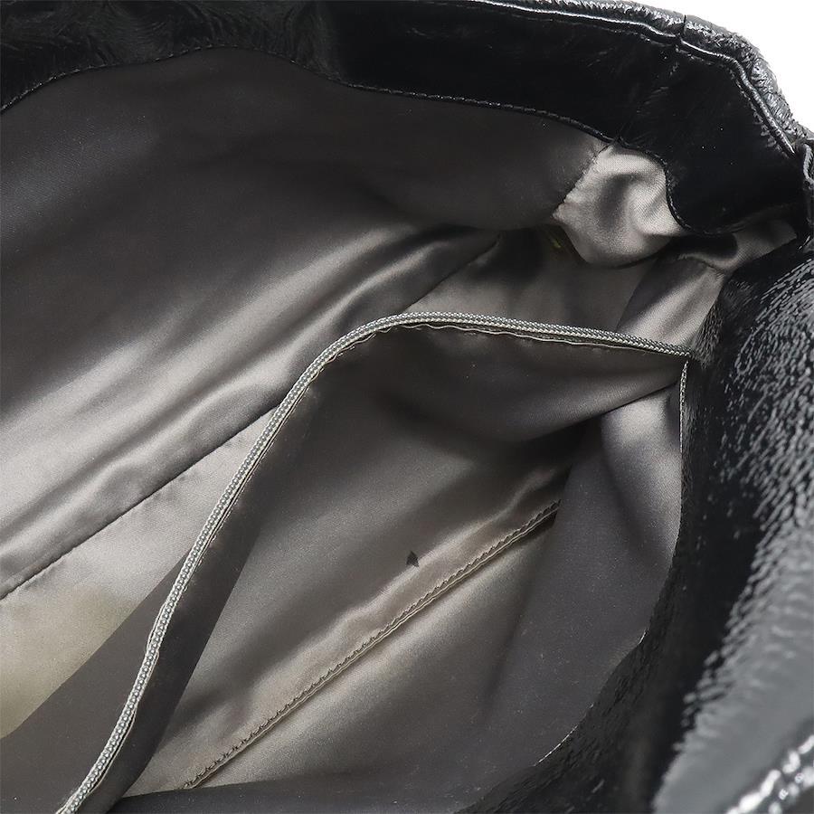 パテントレザーにチェーンショルダーがエレガントなショルダーバッグ。