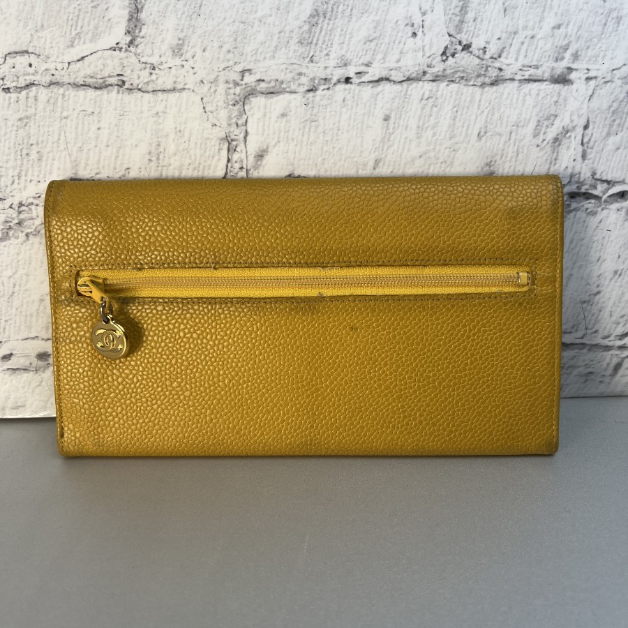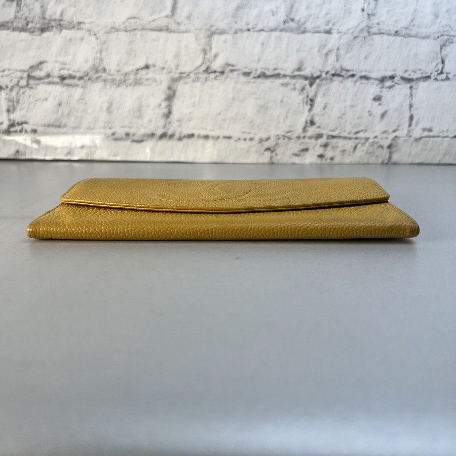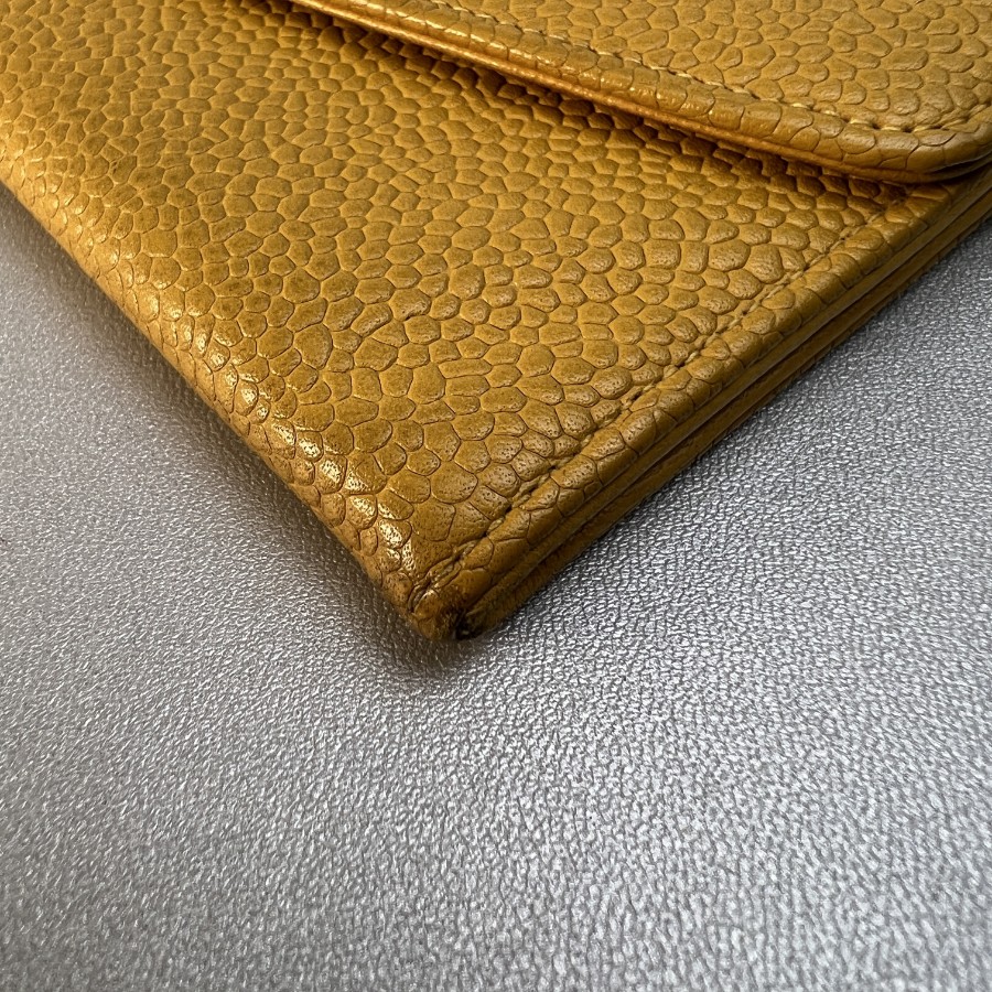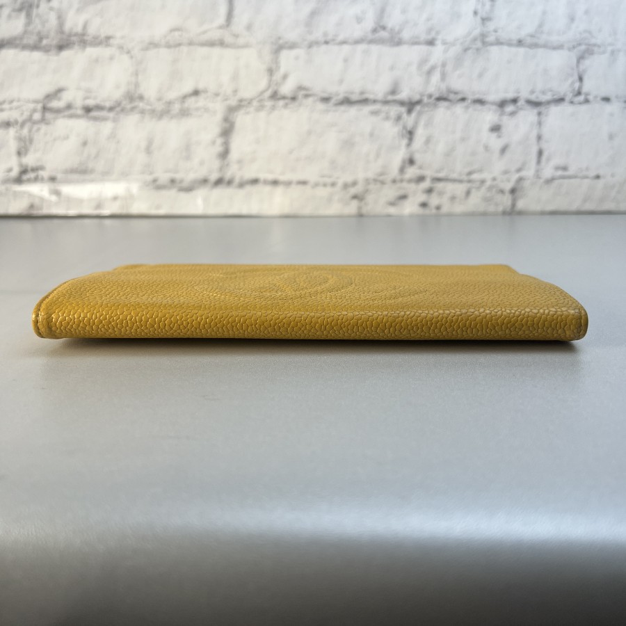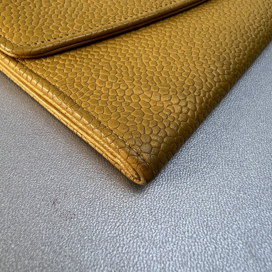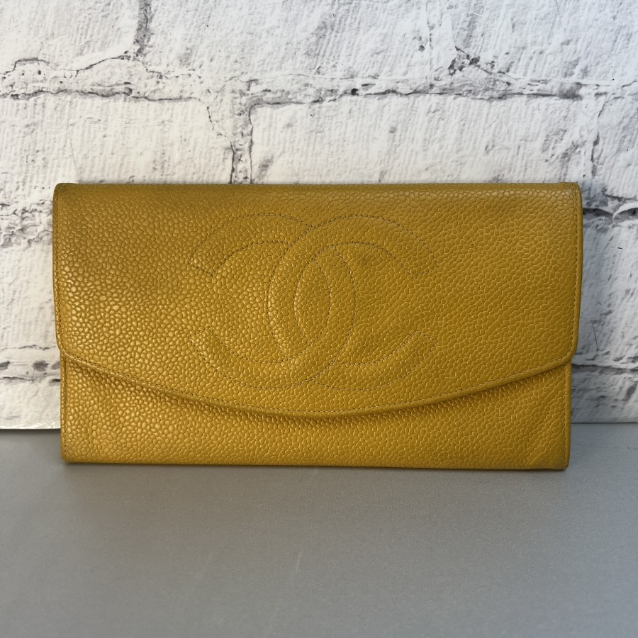 【アイテム】良品 CHANEL シャネル ココマーク キャビアスキン 長財布 イエロー A-12557