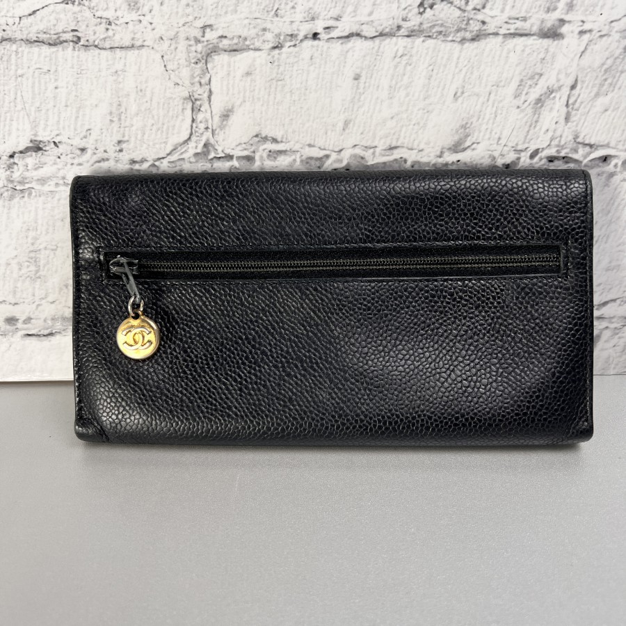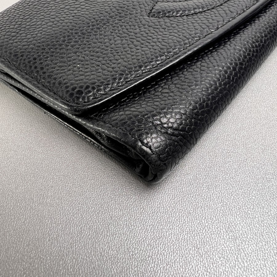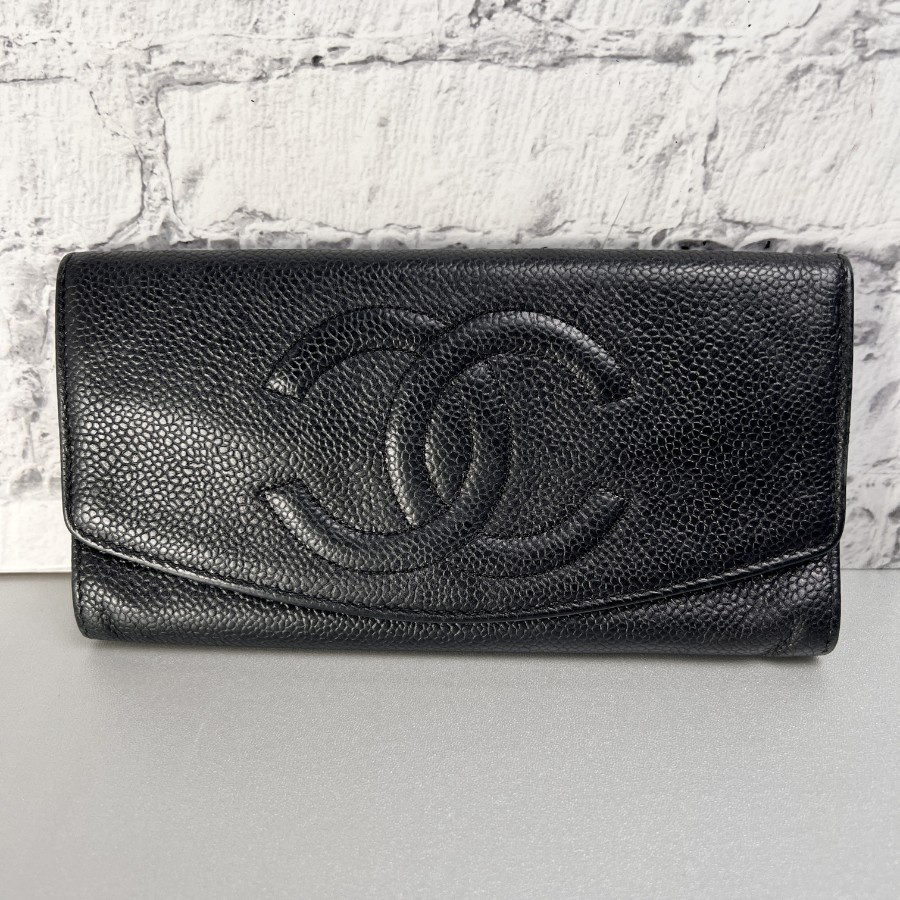 【アイテム】良品 CHANEL シャネル ココマーク キャビアスキン 長財布 ブラック A-12669