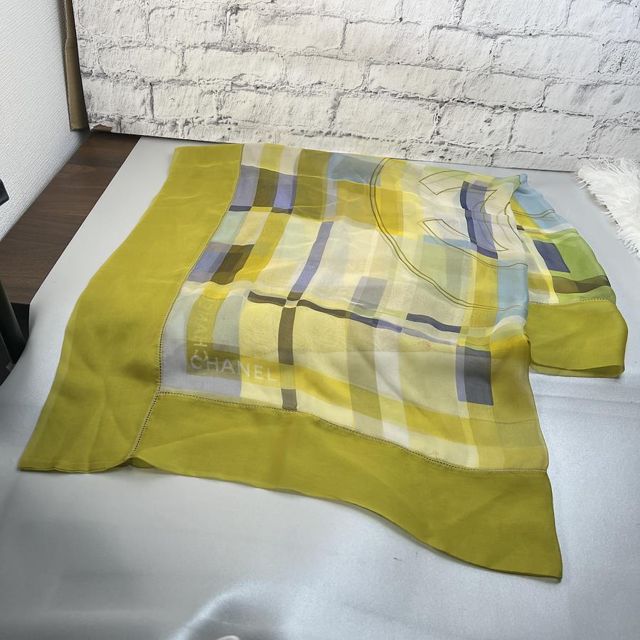 【アイテム】CHANEL シャネル ココマーク シルク スカーフ イエロー A-11481