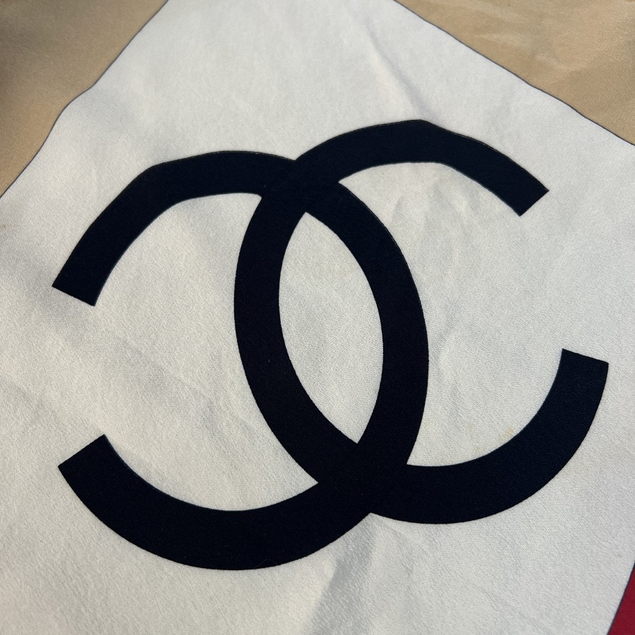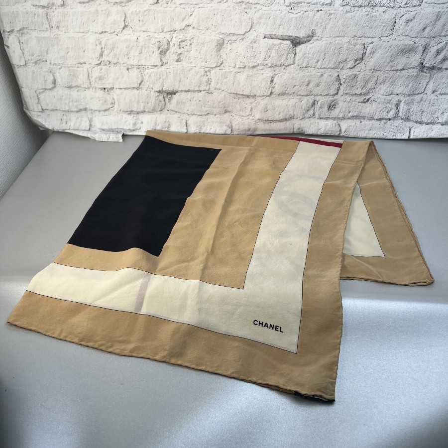 【アイテム】良品 CHANEL シャネル ココマーク シルク スカーフ ベージュ A-12029