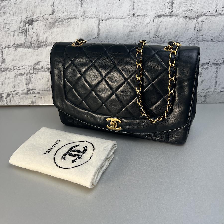 【アイテム】良品 CHANEL シャネル ココマーク ダイアナ レザー ショルダーバッグ ブラック A-9507
