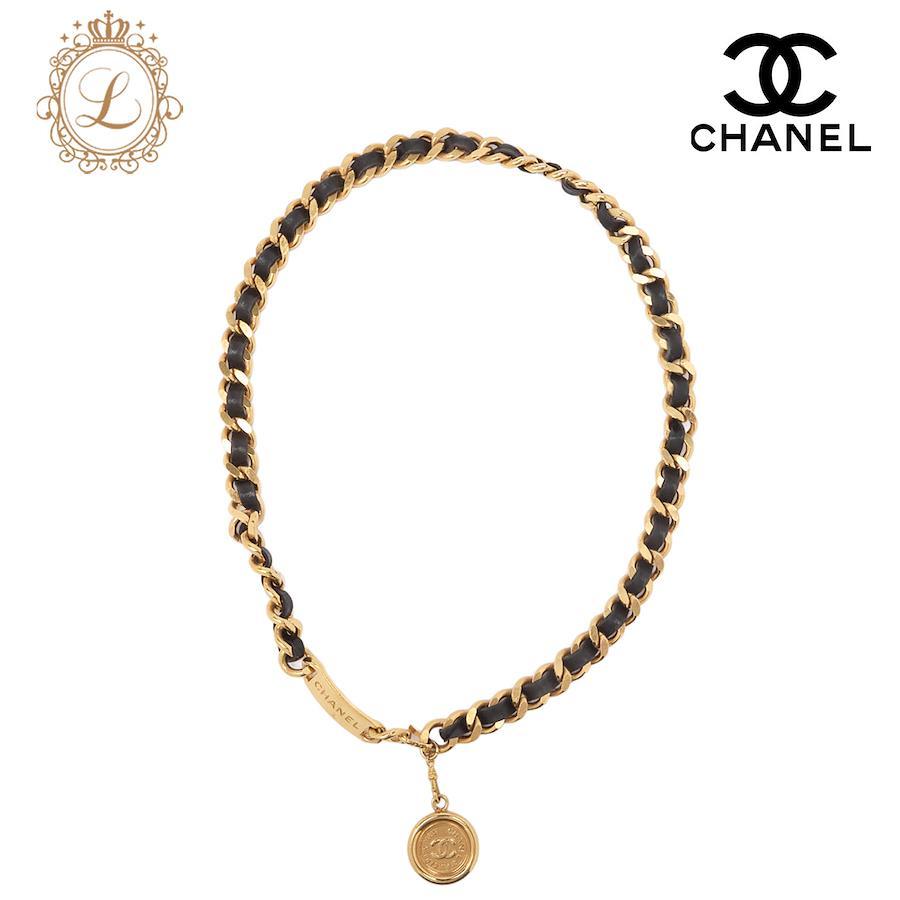 CHANEL Coco Mark Chain Belt, GP x Leather, Black x Gold (Gold Plated), Gold Chain Belt Earrings, Women's Earrings, Women's Bag, High-End Brand [Pre-owned], Pre-owned - Good Condition