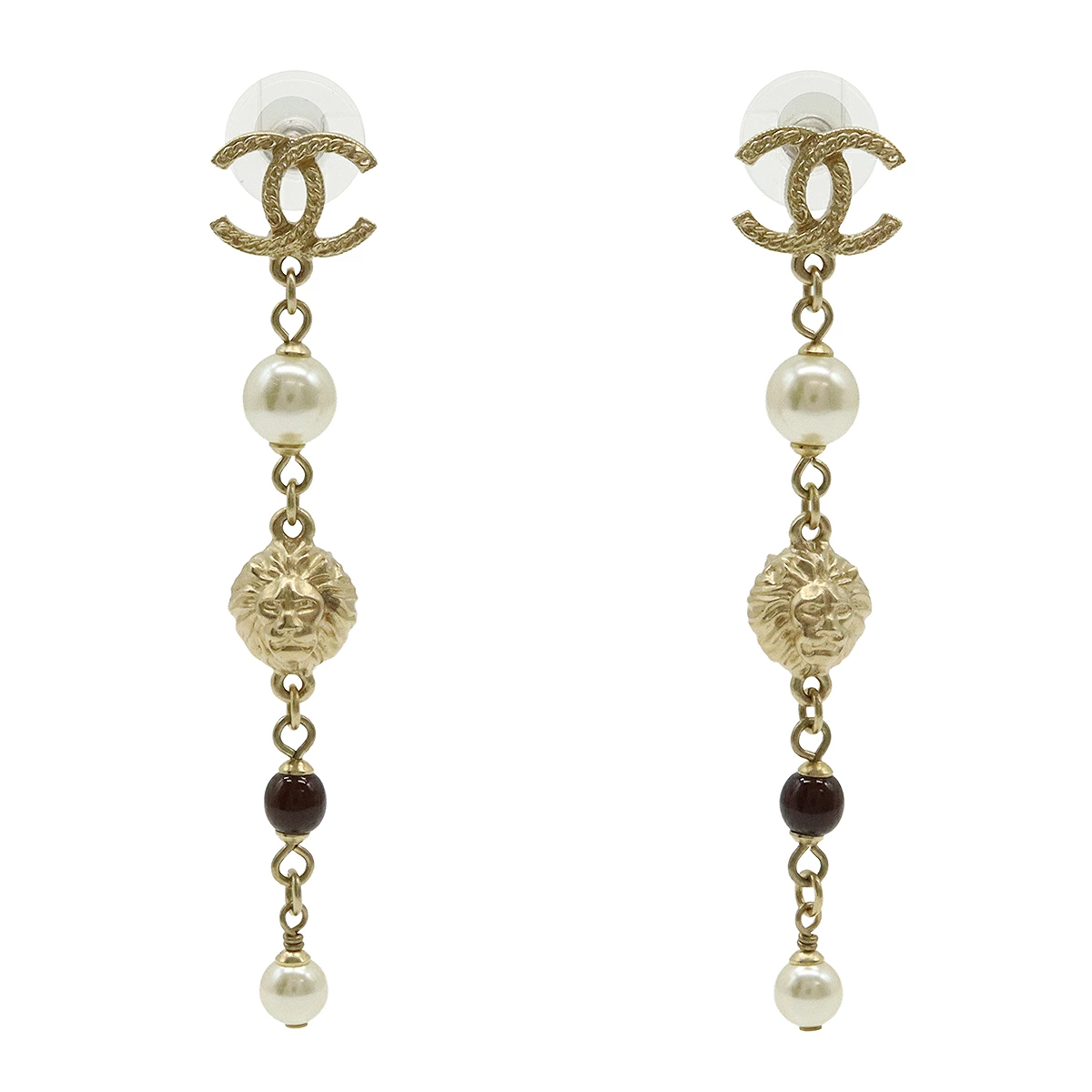 パールやライオンヘッドが耳元で揺れる上品なデザイン。