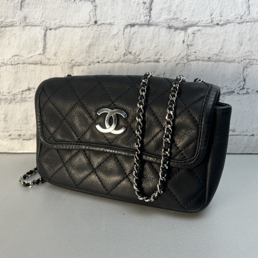 【アイテム】良品 CHANEL シャネル ココマーク マトラッセ レザー ショルダーバッグ ブラック A-12412