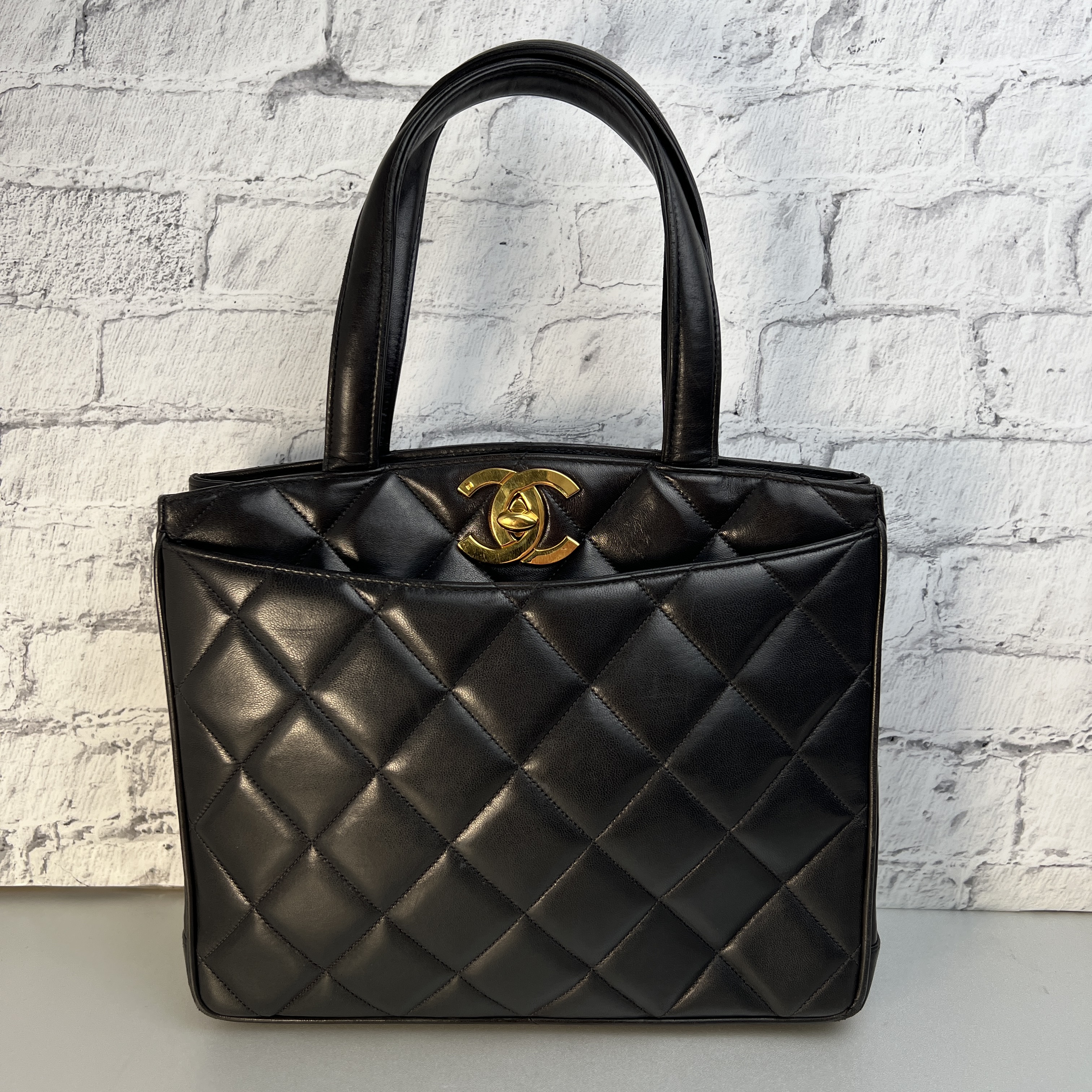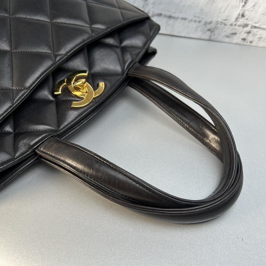 【アイテム】良品 CHANEL シャネル ココマーク レザー ハンドバッグ ブラック A-9990