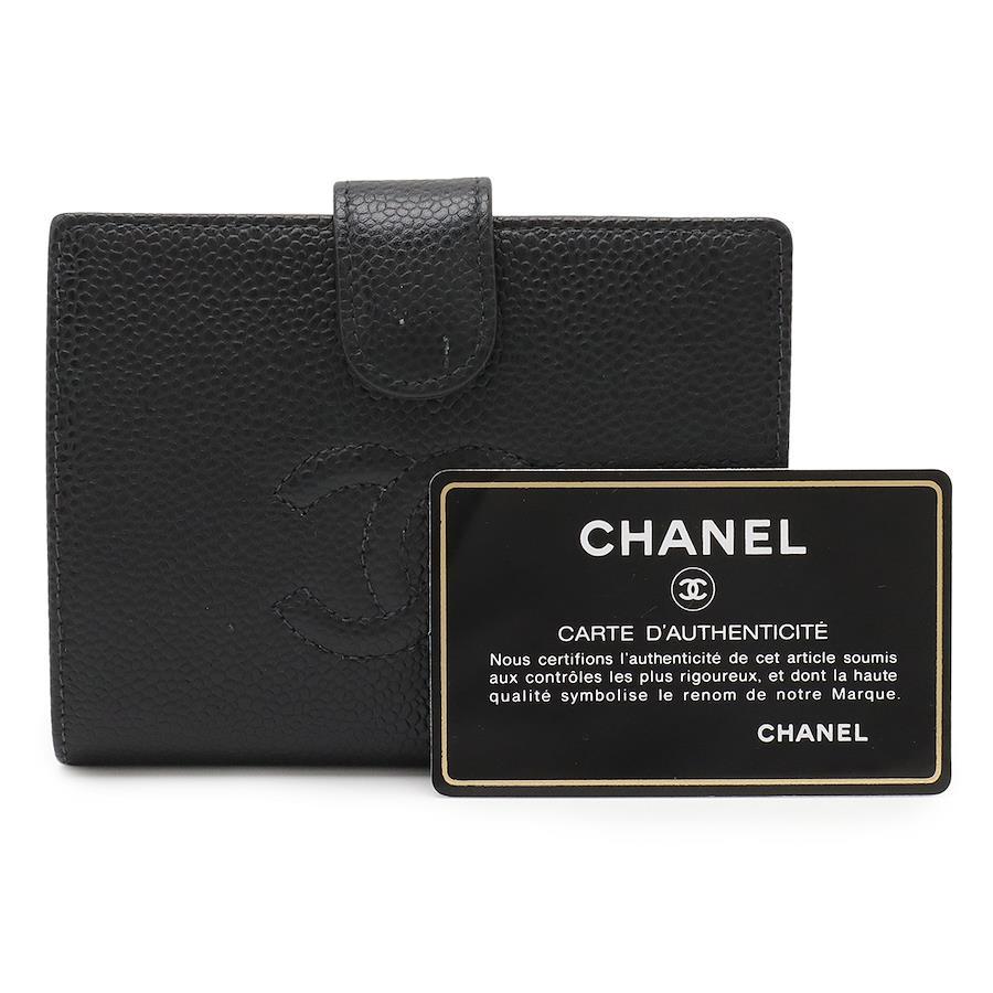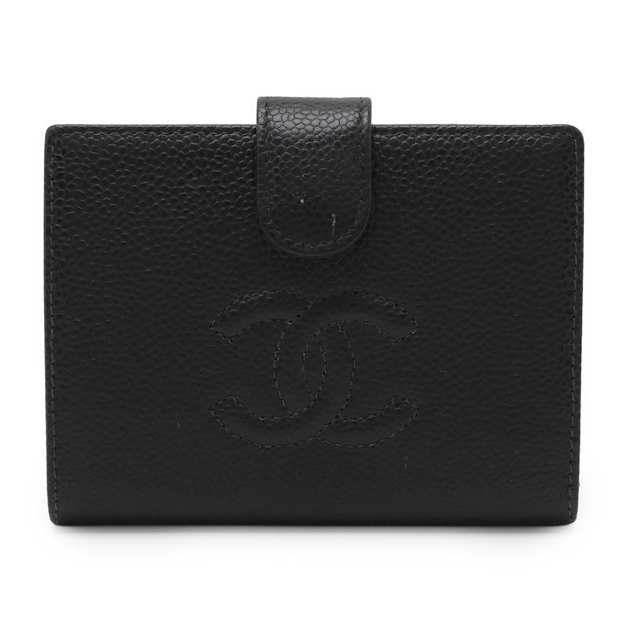 【コメント】内側に使用感がございますが、その他は状態の良いお品物でございます。女性らしさ溢れるエレガントなデザインのキャビアスキン財布。フロントのココマークが印象的な、機能性の高い使いやすいアイテムでございます。