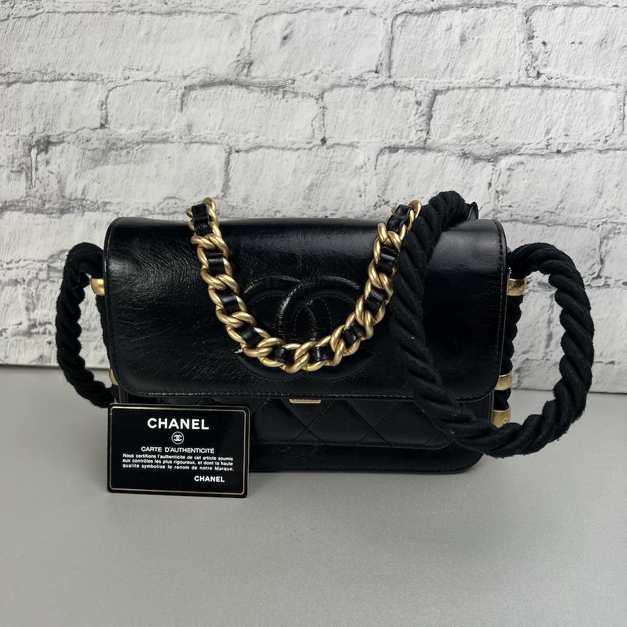 【アイテム】良品 CHANEL シャネル ココマーク 2WAY レザー ショルダーバッグ ブラック A-9893