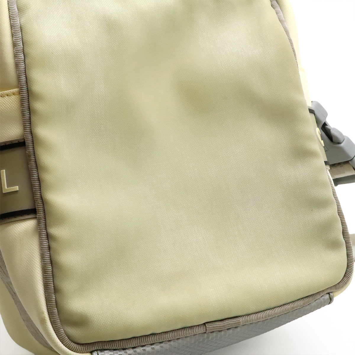 【商品説明】[サイズ]W17cm H20cm D10cm ショルダー最長約137cm(調節可)[材質]ナイロンキャンバス[カラー]アイボリー/グレー[仕様]内側ポケット1[付属品]保存袋 ギャランティカード[重さ]約290g