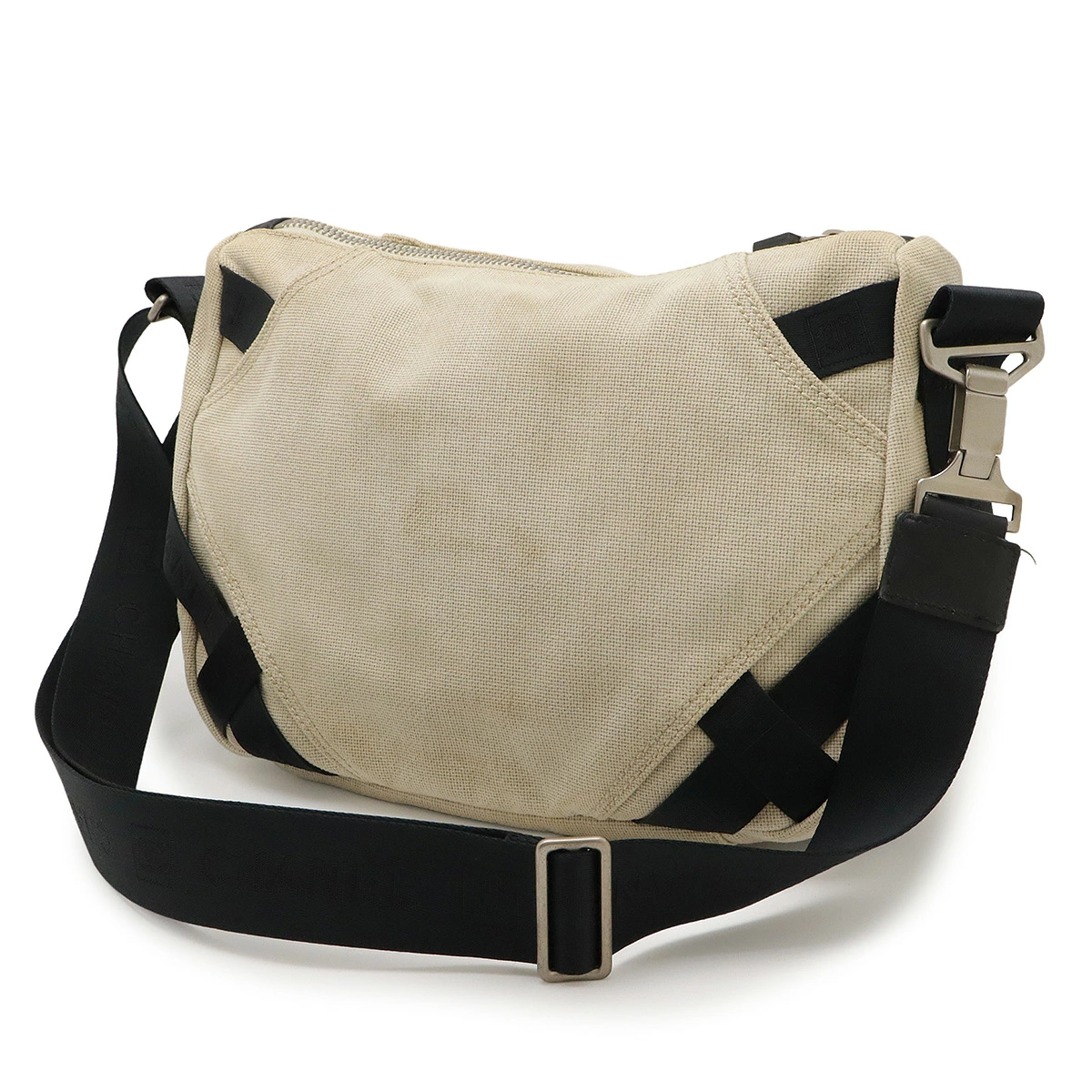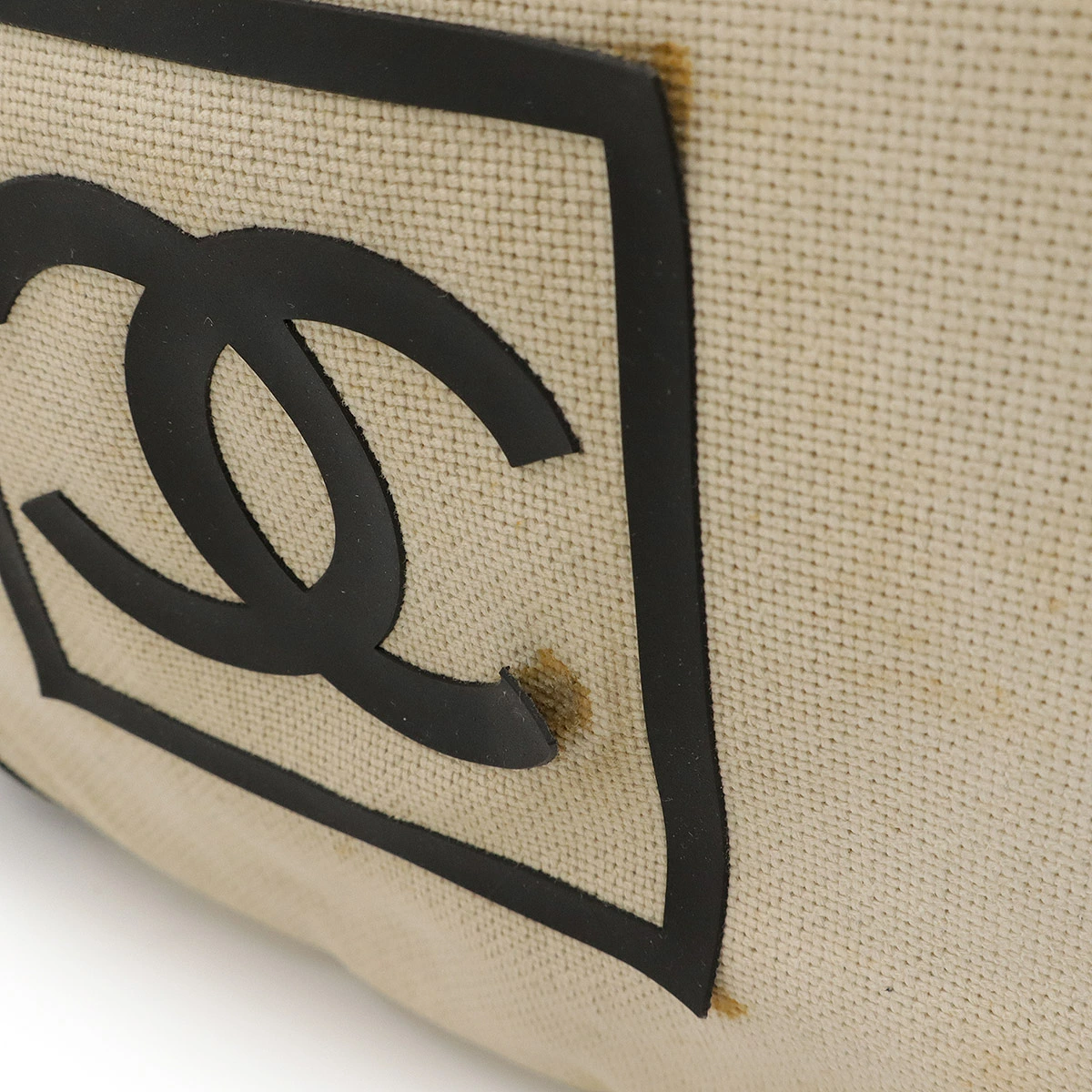 Pre-owned CHANEL Sport Line Coco Mark Shoulder Bag/Messenger Bag in Beige and Black Canvas with Silver Hardware