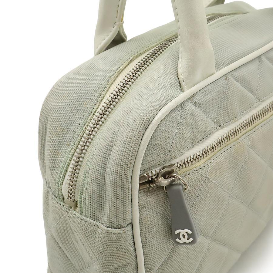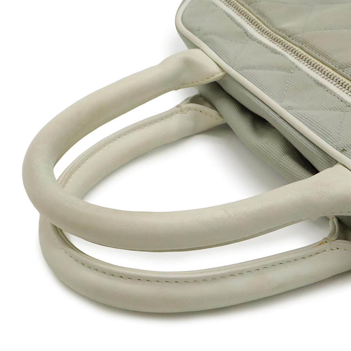 【商品説明】[サイズ]W23cm-27cm H15.5cm D9.5cm[材質]キャンバス/レザー[カラー]ライトグレー/ホワイト[仕様]外側背面ファスナーポケット1、内側ファスナーポケット1[付属品]保存袋 ギャランティカード