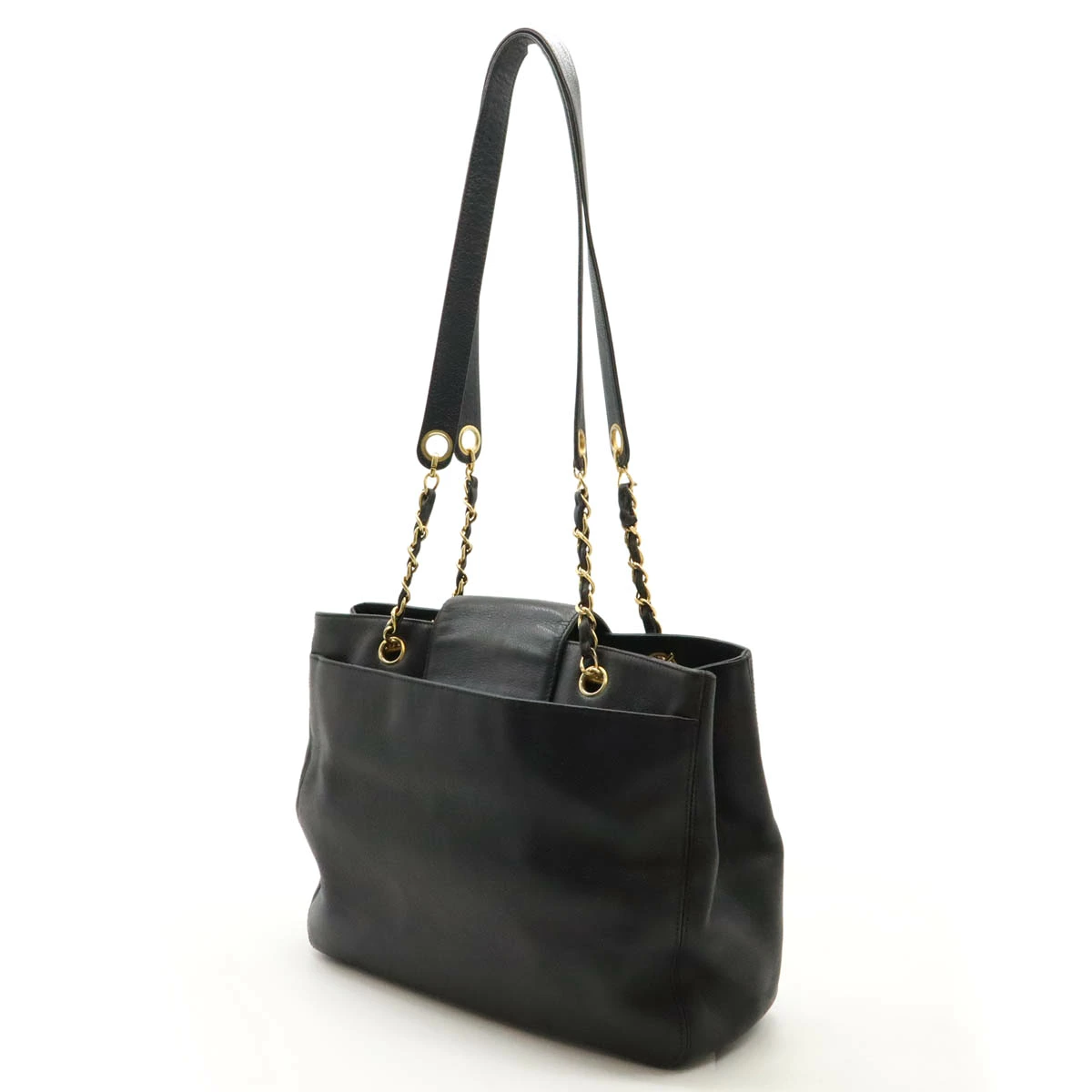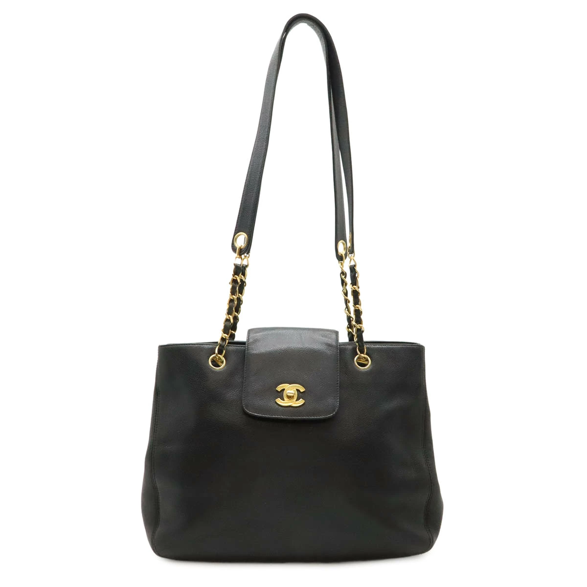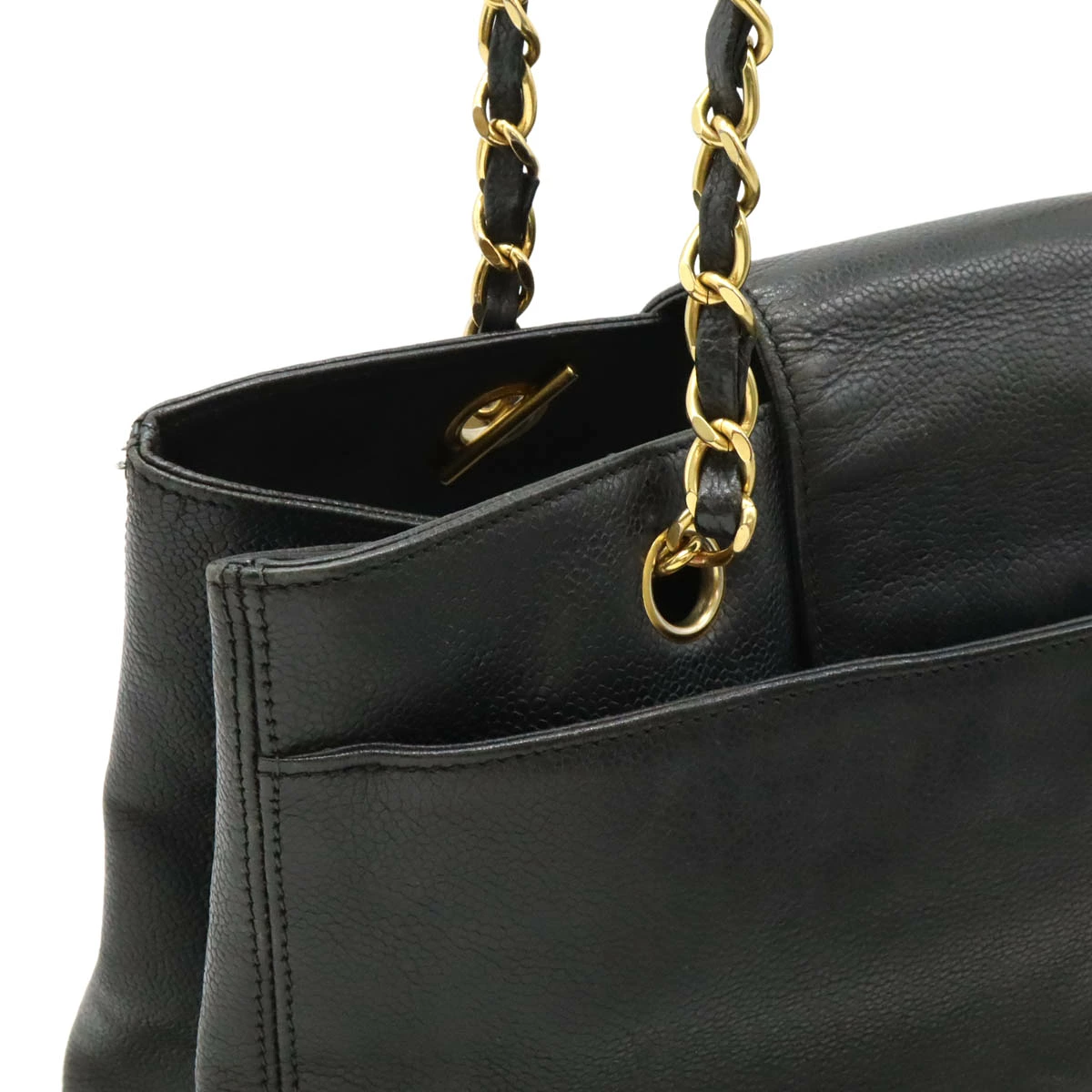 高級感溢れるゴールド金具とキャビアスキンのチェーンショルダーバッグ。