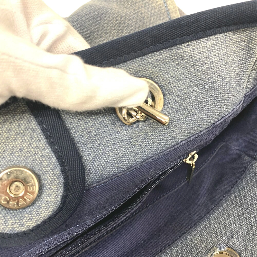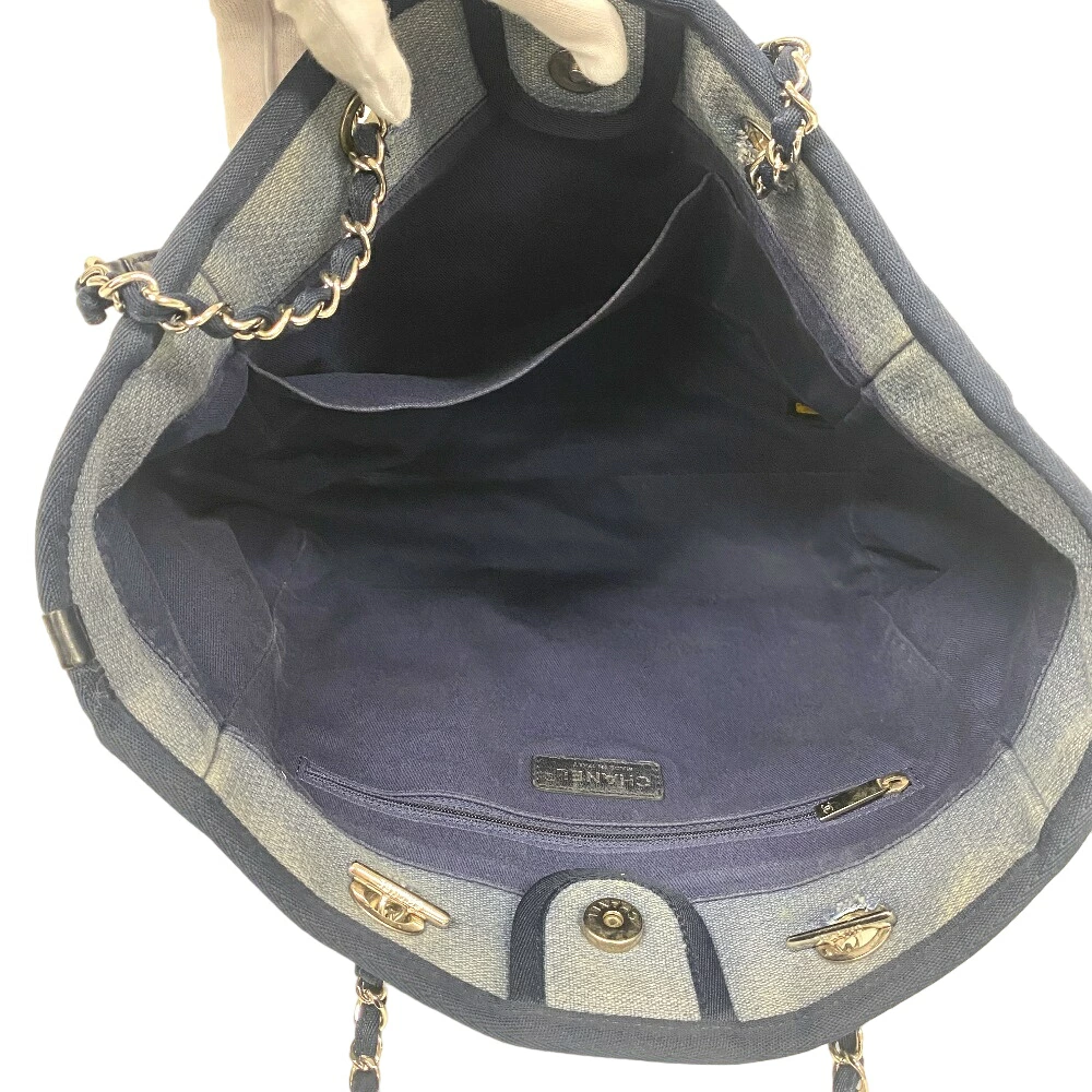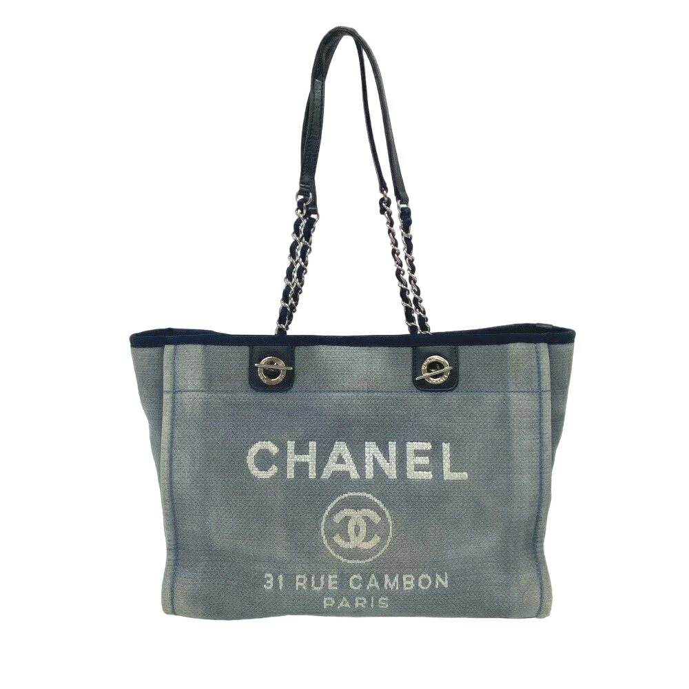 CHANEL Deauville MM Chain Tote Bag, Navy, Women's