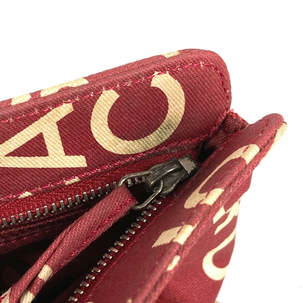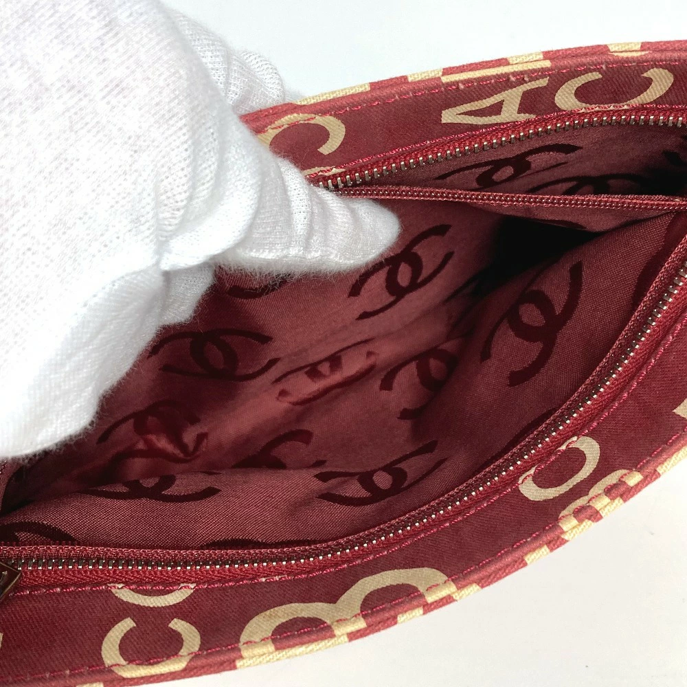Pre-owned CHANEL Bi-Cea logo makeup pouch, clutch bag, canvas, women's, red.