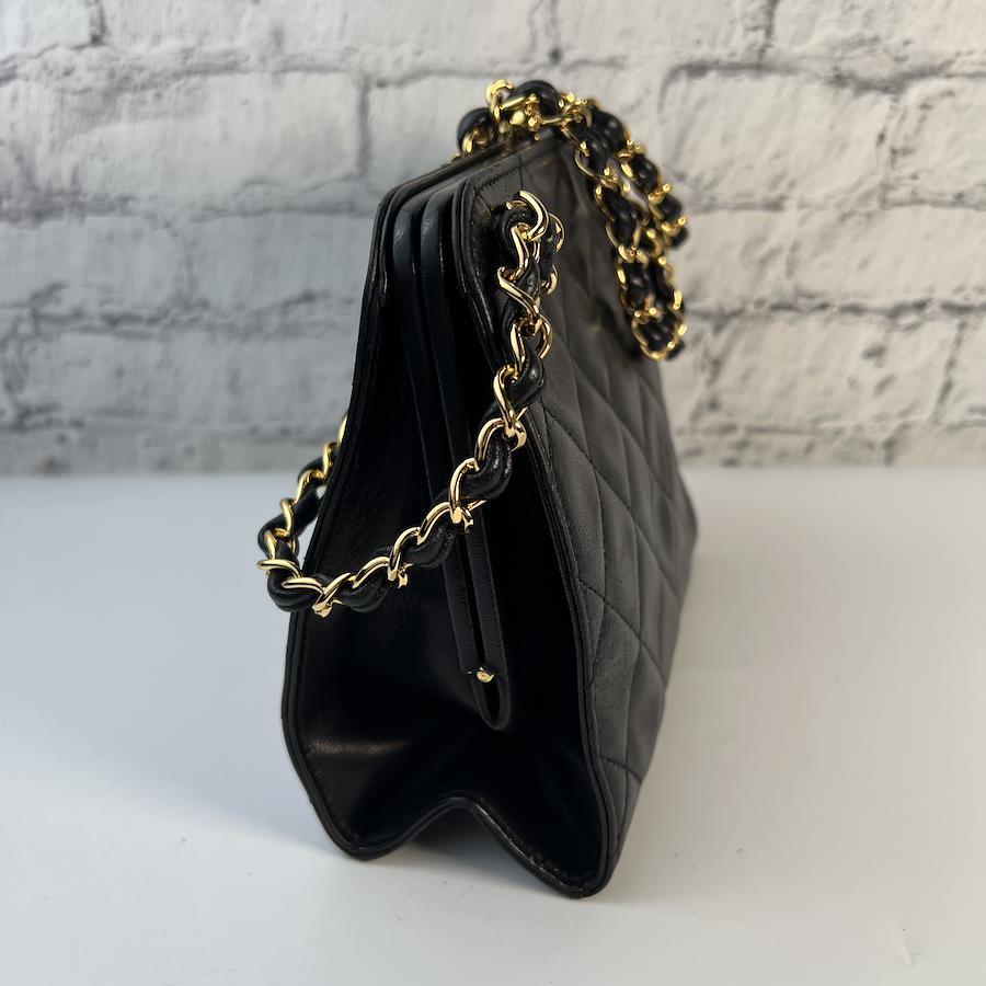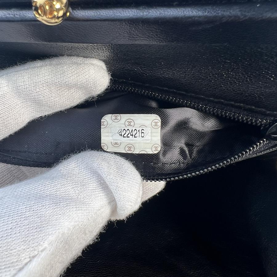 美品 CHANEL シャネル マトラッセ がま口 ラムスキン ショルダーバッグ ブラック A-9129