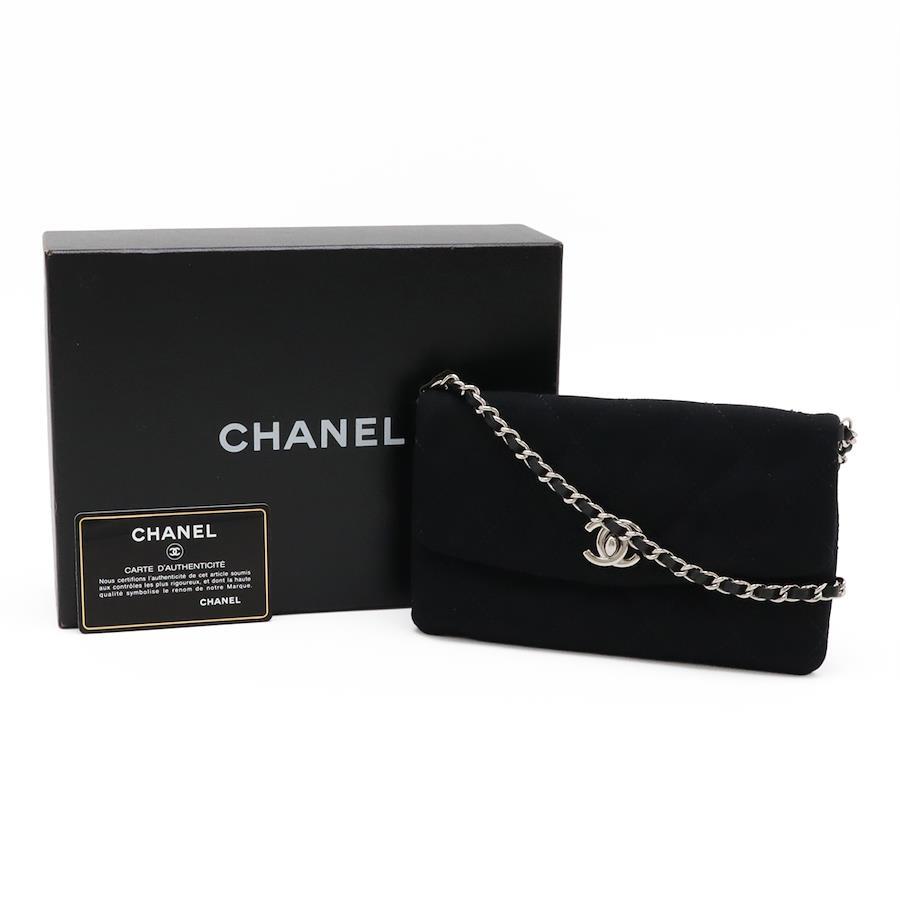 【商品説明】[サイズ]W18cm H12cm チェーンショルダー長さ約120cm(調節不可)[材質]コットン[カラー]ブラック[仕様]外側背面ファスナーポケット1[付属品]外箱(若干の薄汚れ) 保存袋 ギャランティカード[重さ]約250g