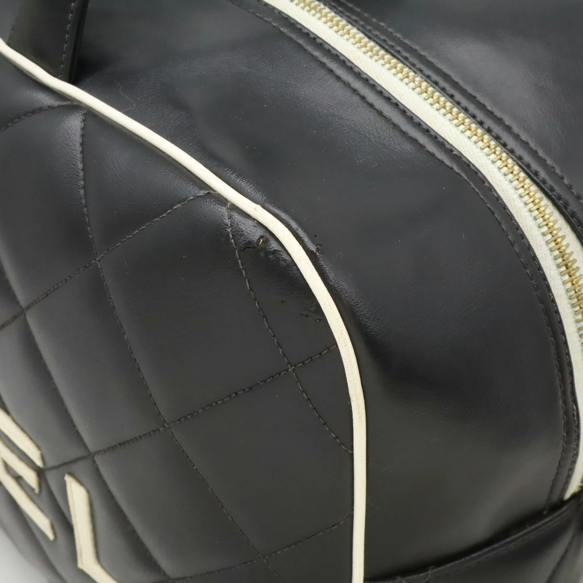 背面上部角キズ、角スレ、膨らみ、若干のシワ、ファスナーテープ変色