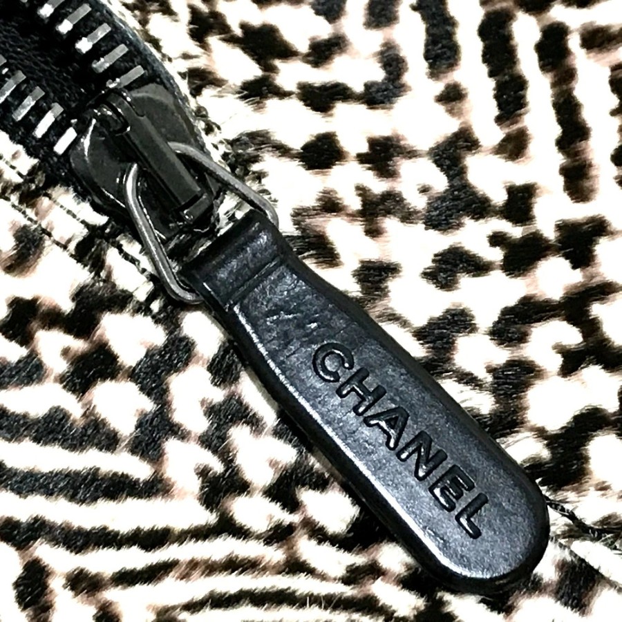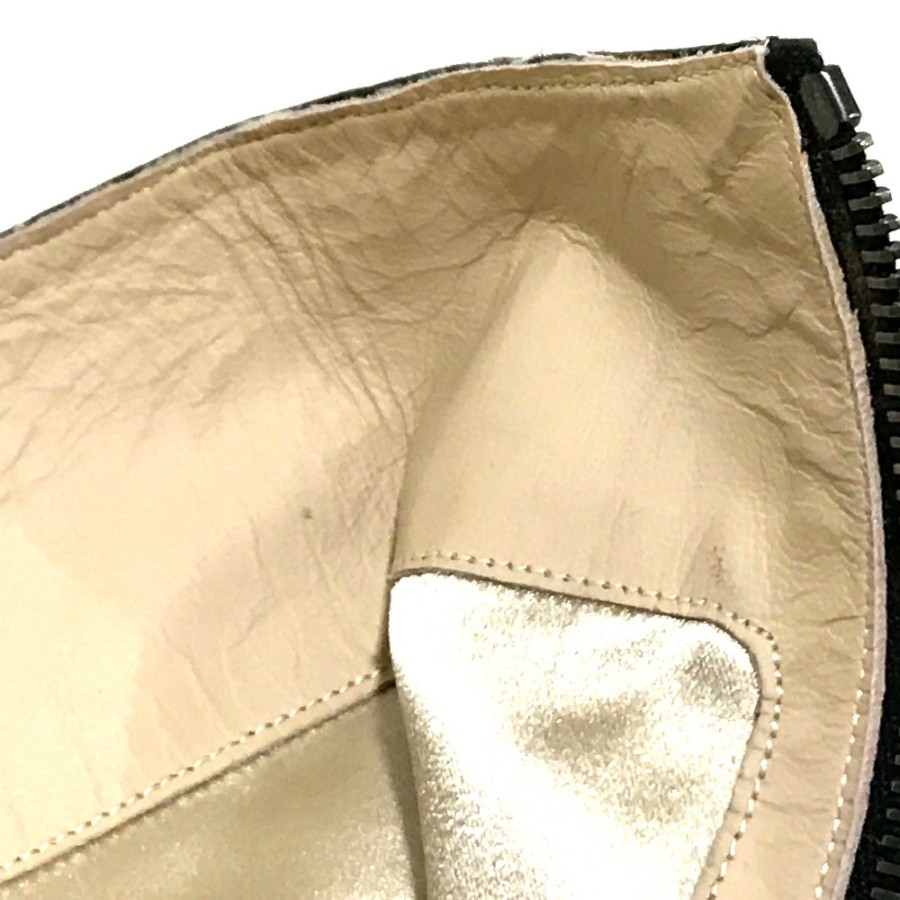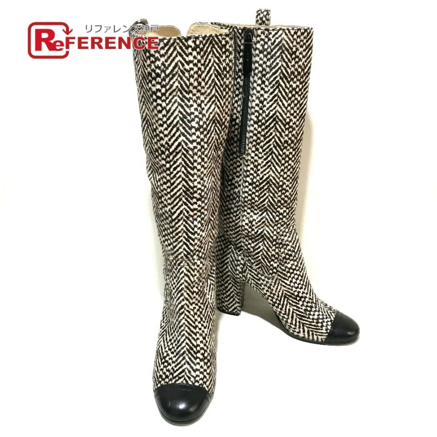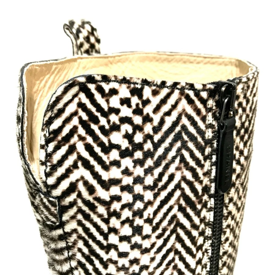 CHANEL women's boots, side zip, chunky heel, calfskin, black/black/beige. [Used]