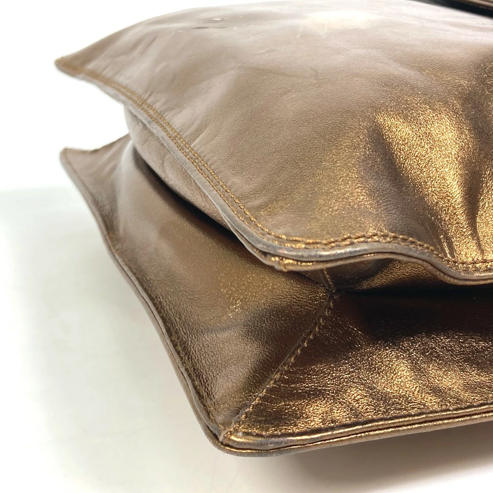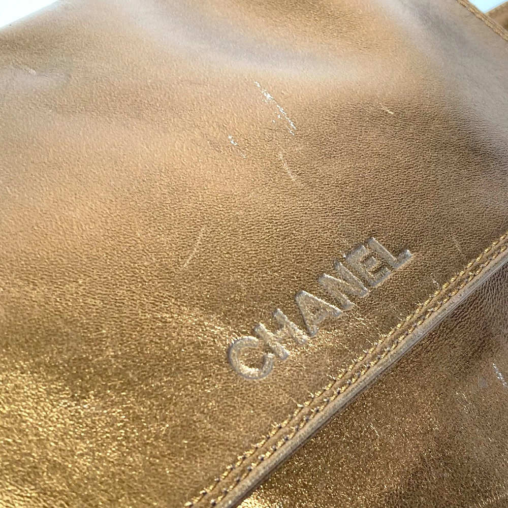 Pre-owned CHANEL logo shoulder bag in bronze leather.