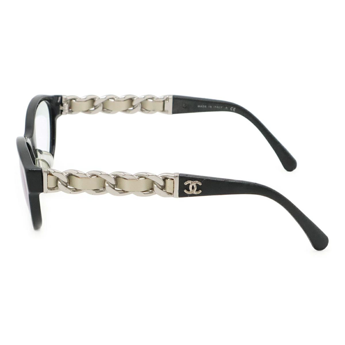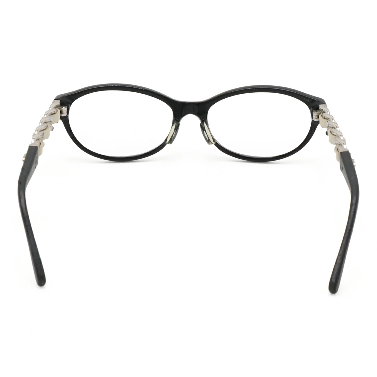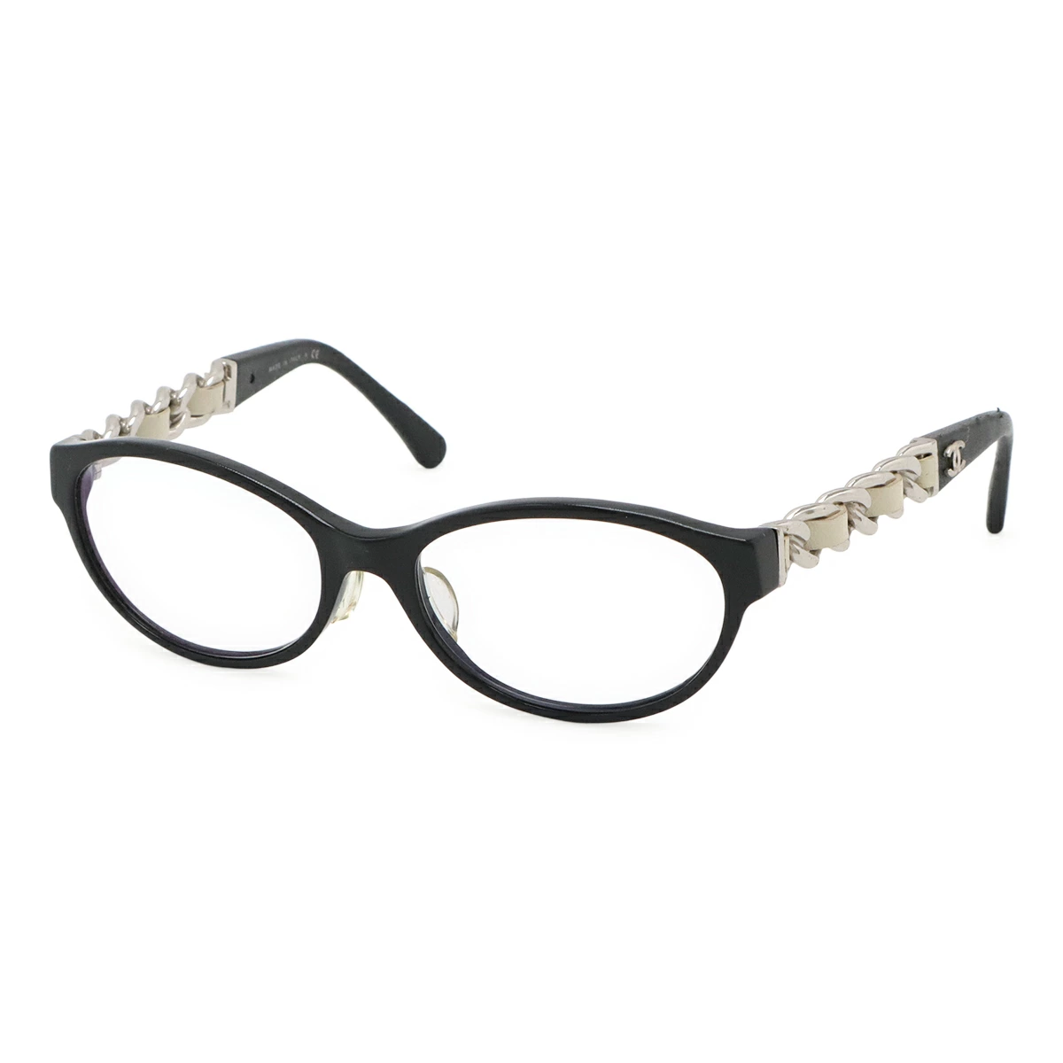 チェーンテンプルがおしゃれなオーバルシェイプのメガネです。