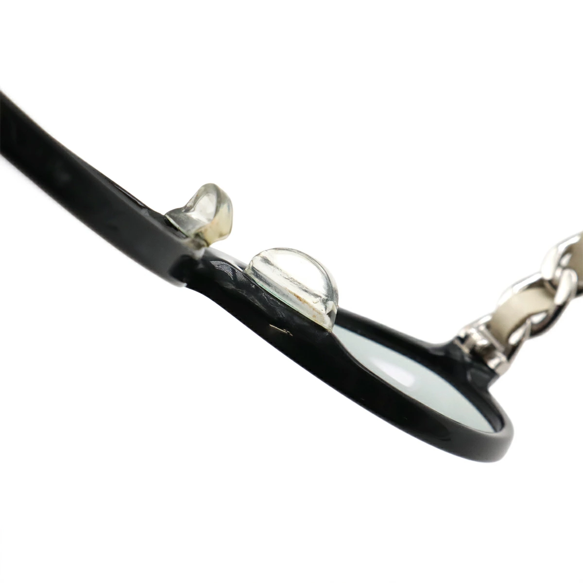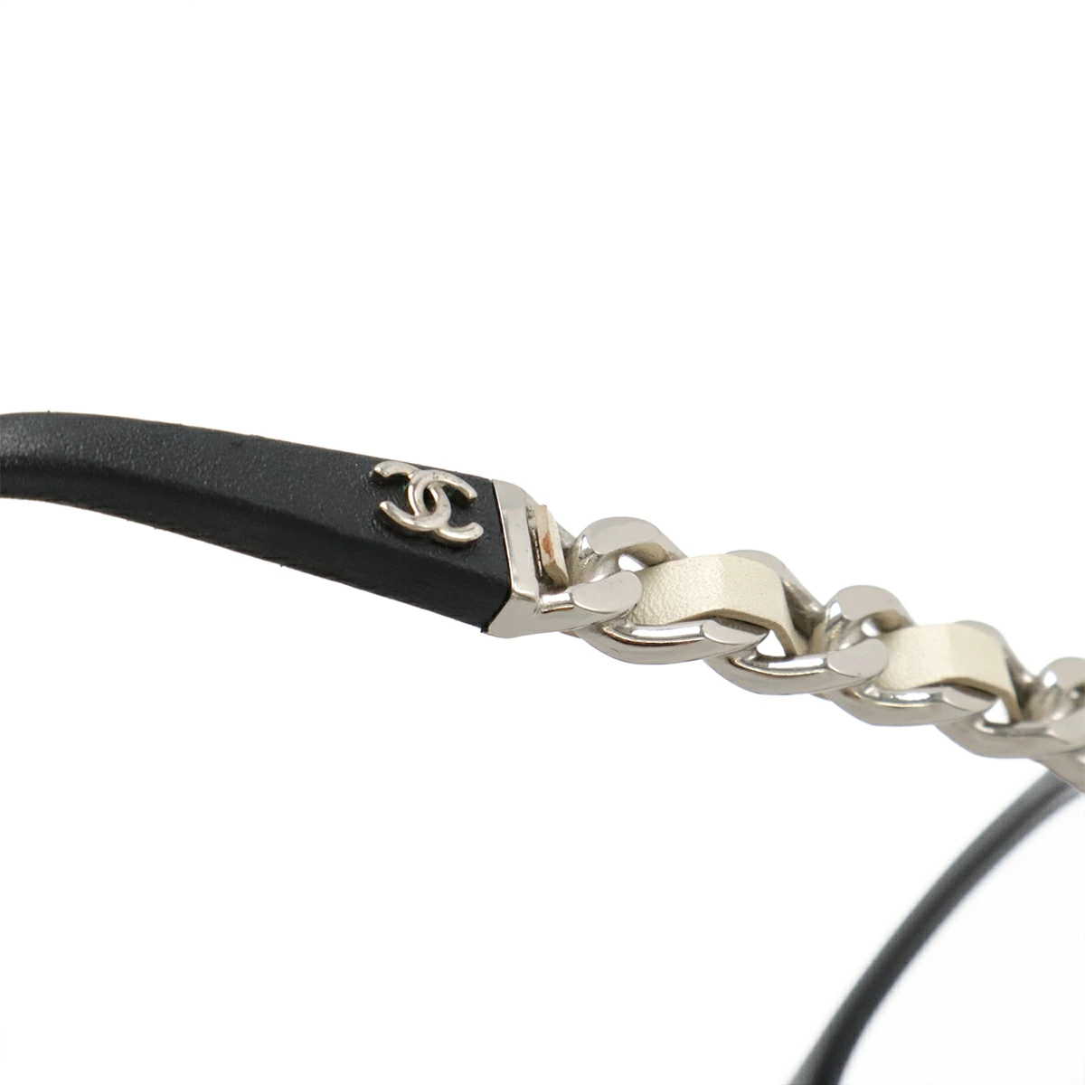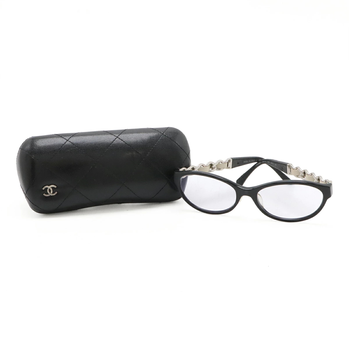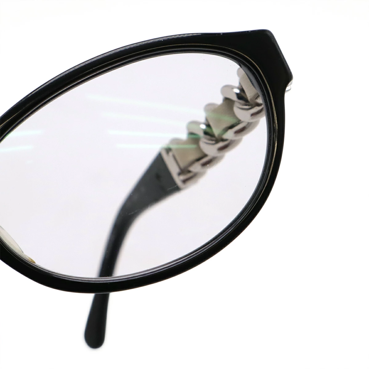 チェーンテンプルがおしゃれなオーバルシェイプのメガネです。