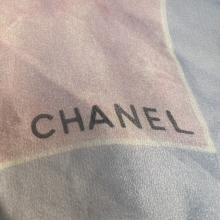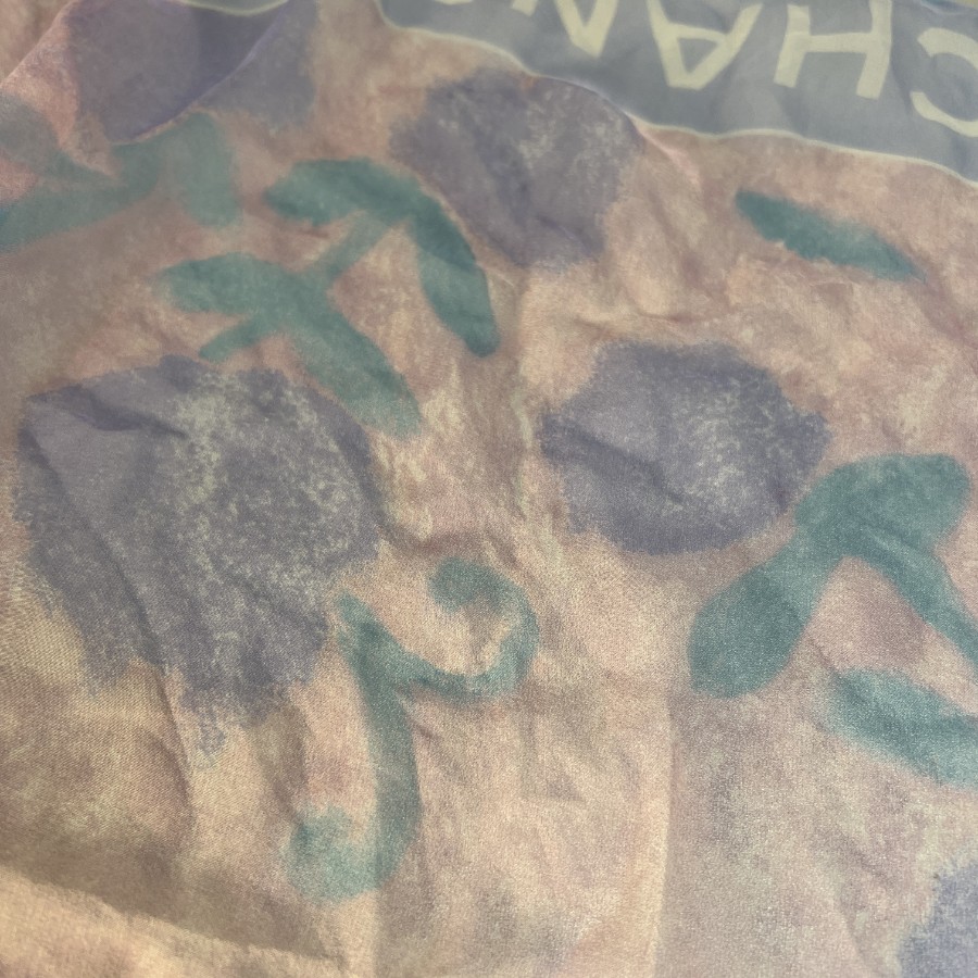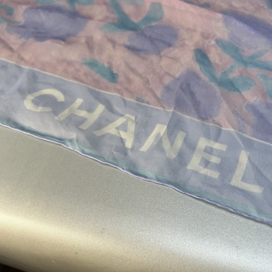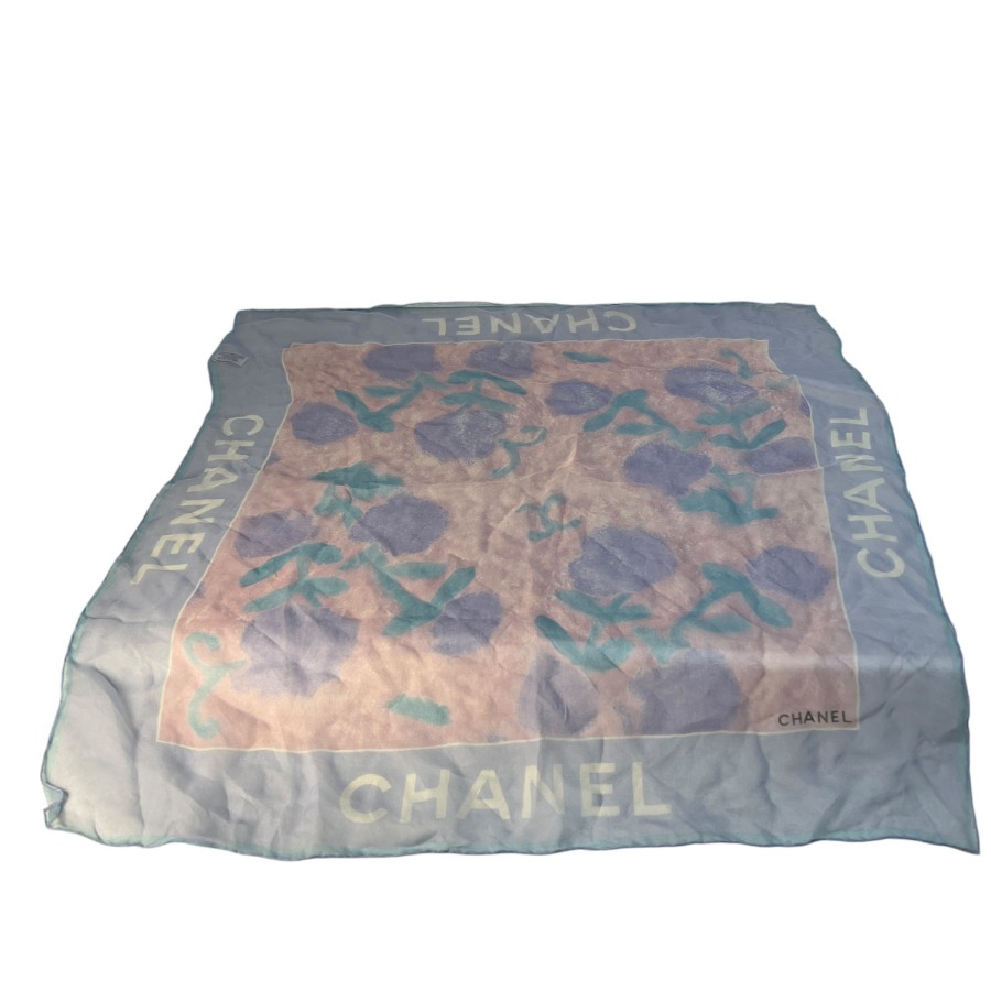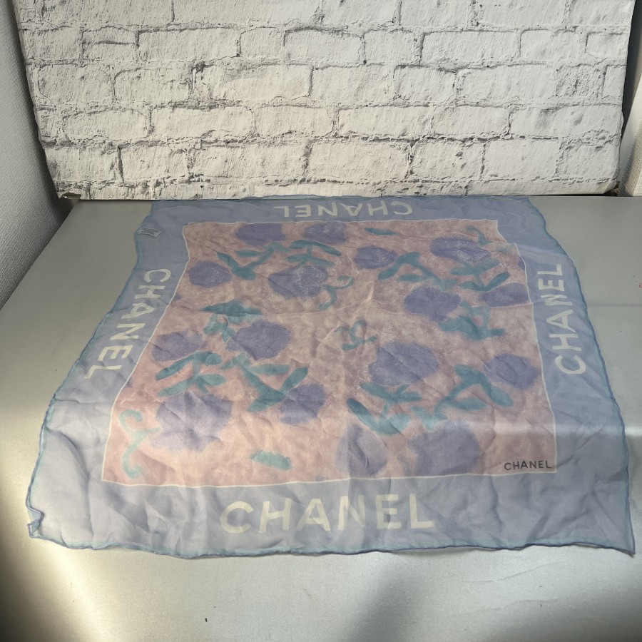 【アイテム】良品 CHANEL シャネル 花柄 タグ付き シルク スカーフ ブルー A-12361