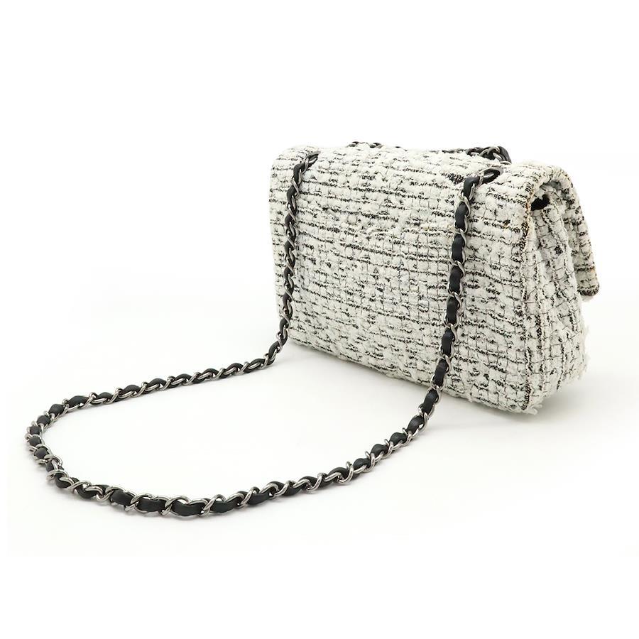 【商品説明】[サイズ]W25.5cm H16cm D6.5cm ショルダー全長約88cm[材質]ツイード/レザー[カラー]ホワイト/ブラック[仕様]外側背面ポケット1、内側ファスナーポケット1、ポケット2、小ポケット2[付属品]ギャランティカード[重さ]約670g