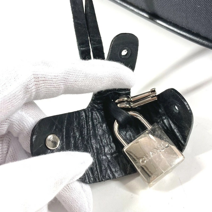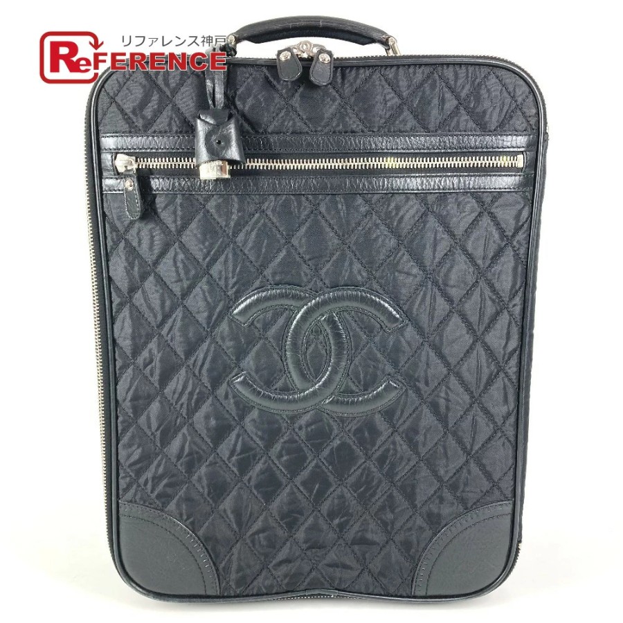 CHANEL A33107 Paris New York Line Matelassé Quilted CC Logo Coco Mark Suitcase, 2-Wheel Travel Bag, Carry-on Bag, Leather/Nylon, Unisex, Black [Used]