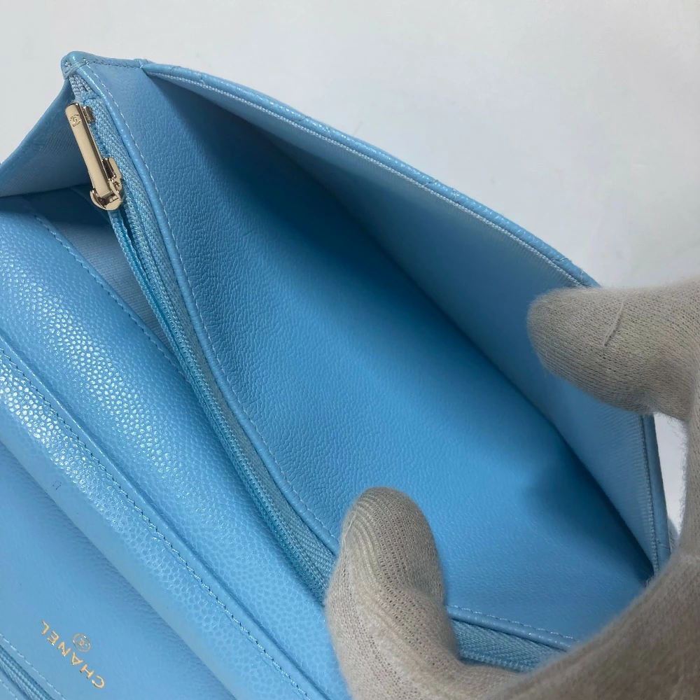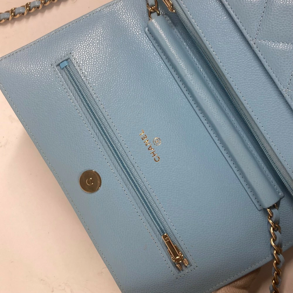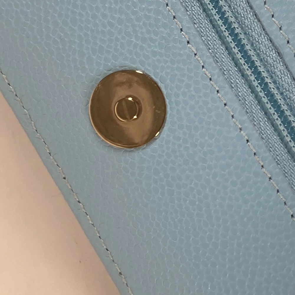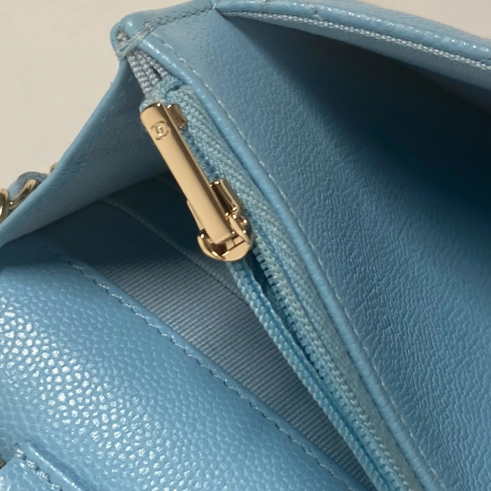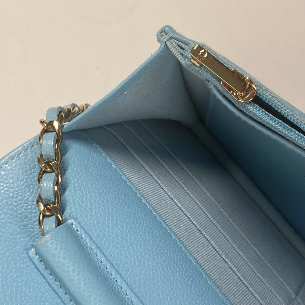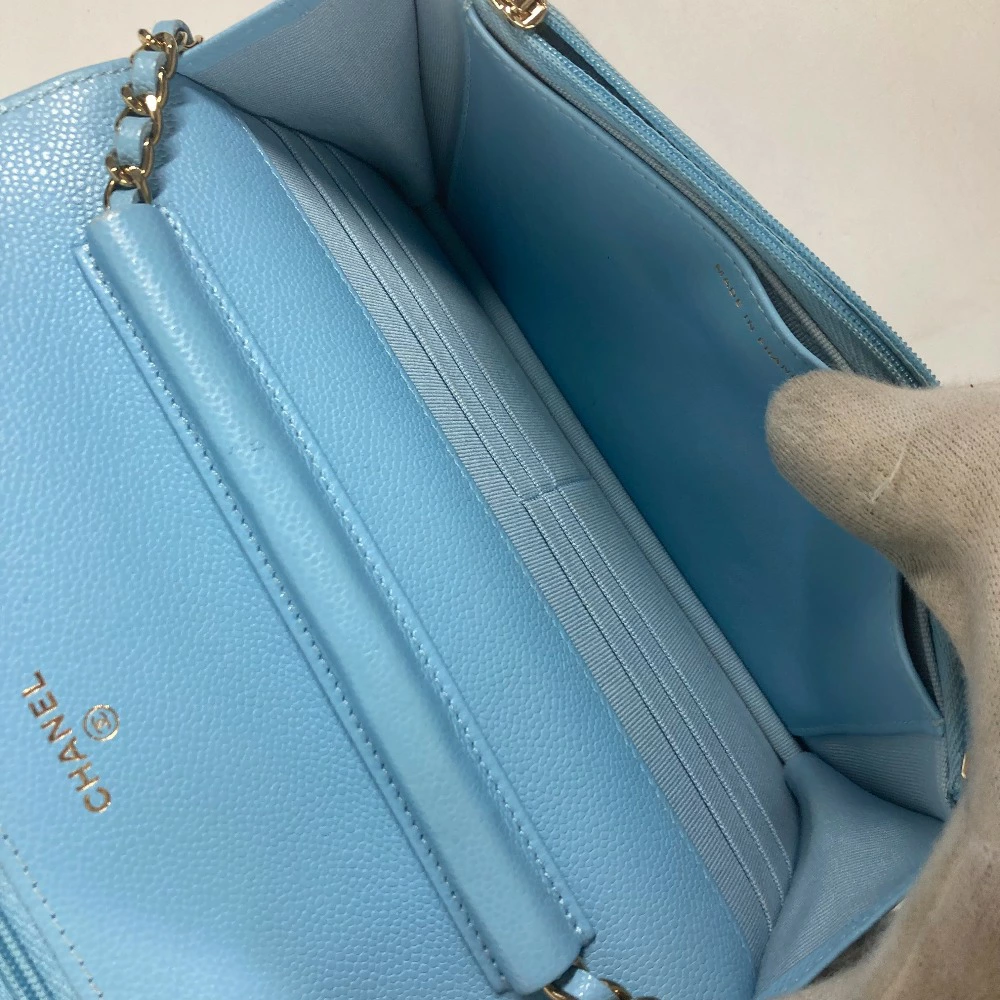 | 商品説明 | 定番人気のシャネルのチェーンウォレット。鮮やかなブルーが可愛い。 |