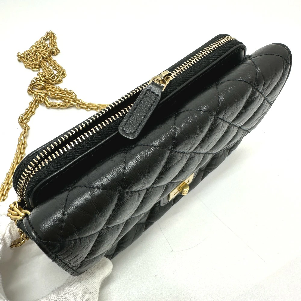 CHANEL AP2215 2.55 Mademoiselle Matelasse Chain Wallet Shoulder Bag in Black Calfskin, Women's, Unused [Pre-owned]