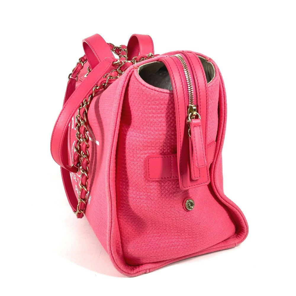 Pre-owned CHANEL AS4166 CC Coco Mark Logo Deauville Boston Bag, 2-Way Handbag, Double Chain Shoulder Bag, Canvas, Women's, Pink