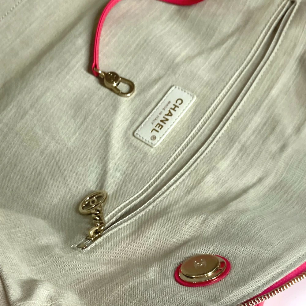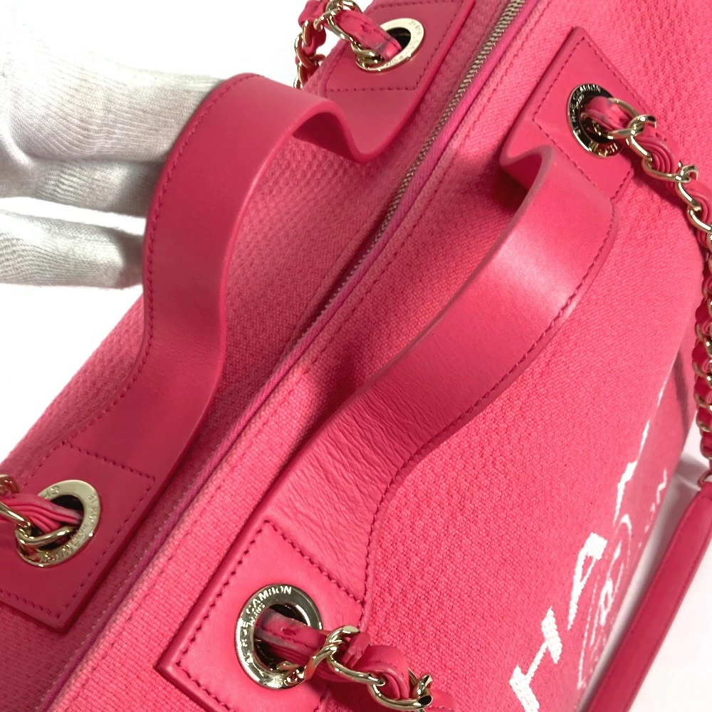 商品説明鮮やかなピンクが目を引く収納力たっぷりのシャネルの2WAYバッグ。