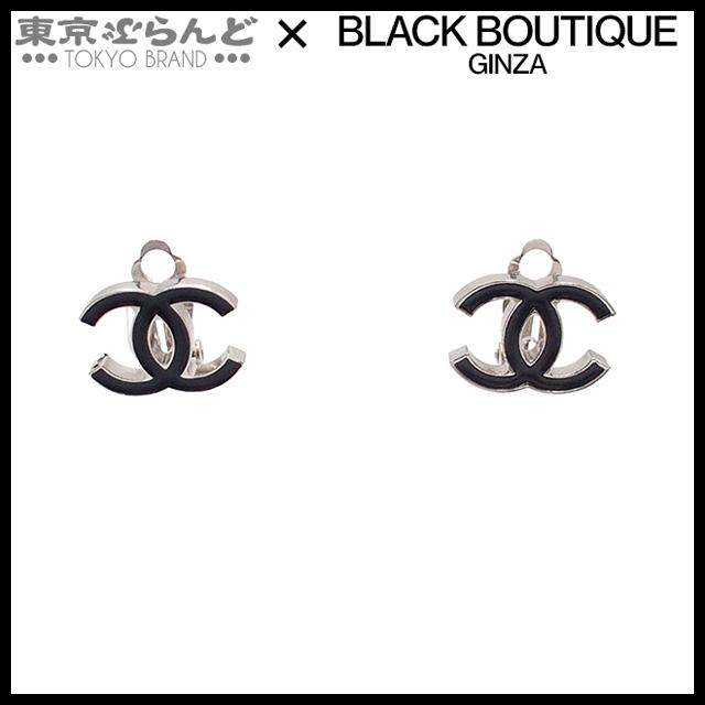 CHANEL COCOmark Costume Jewelry Earrings, Silver and Black Metal, 04A