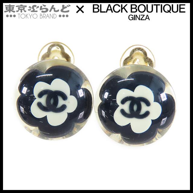 CHANEL Coco Mark Earrings 04S Black x White x Clear Camellia Women's P0043425