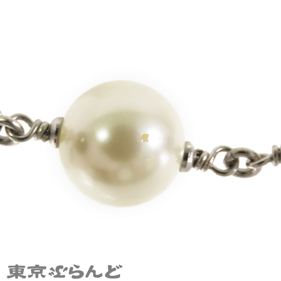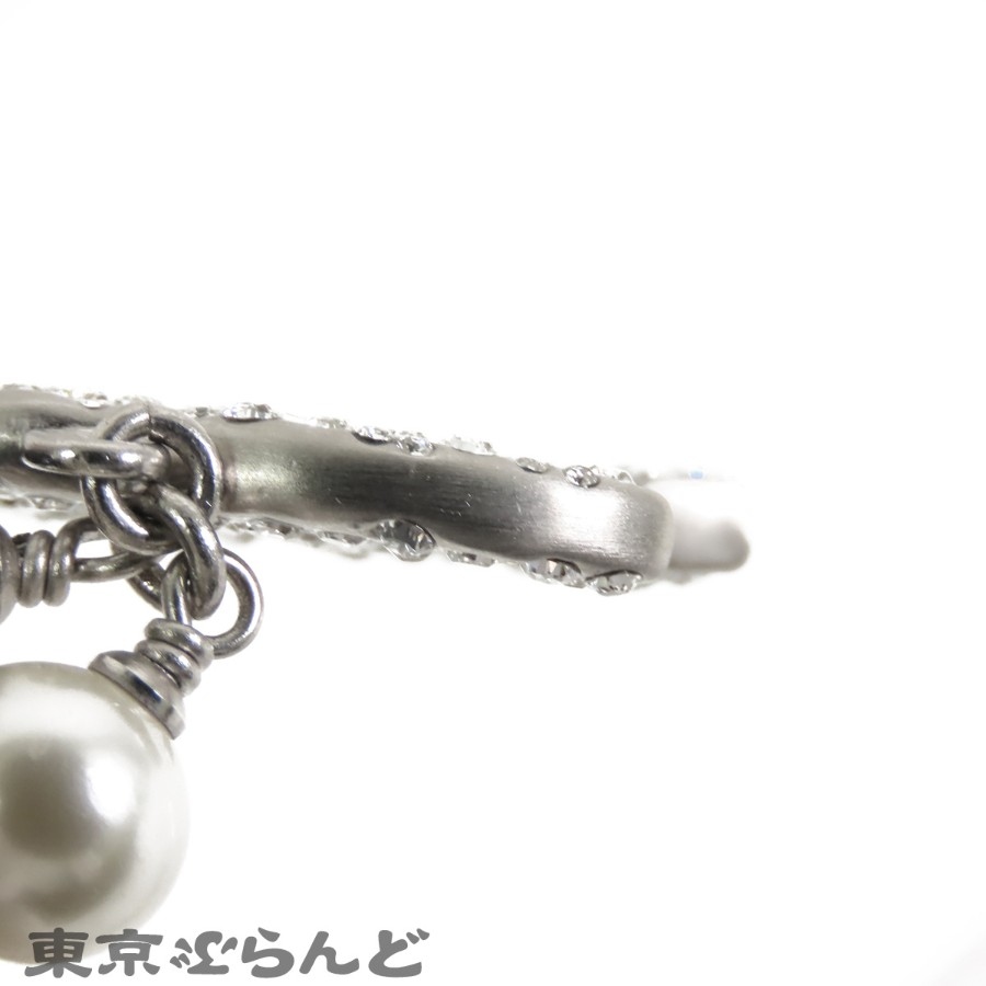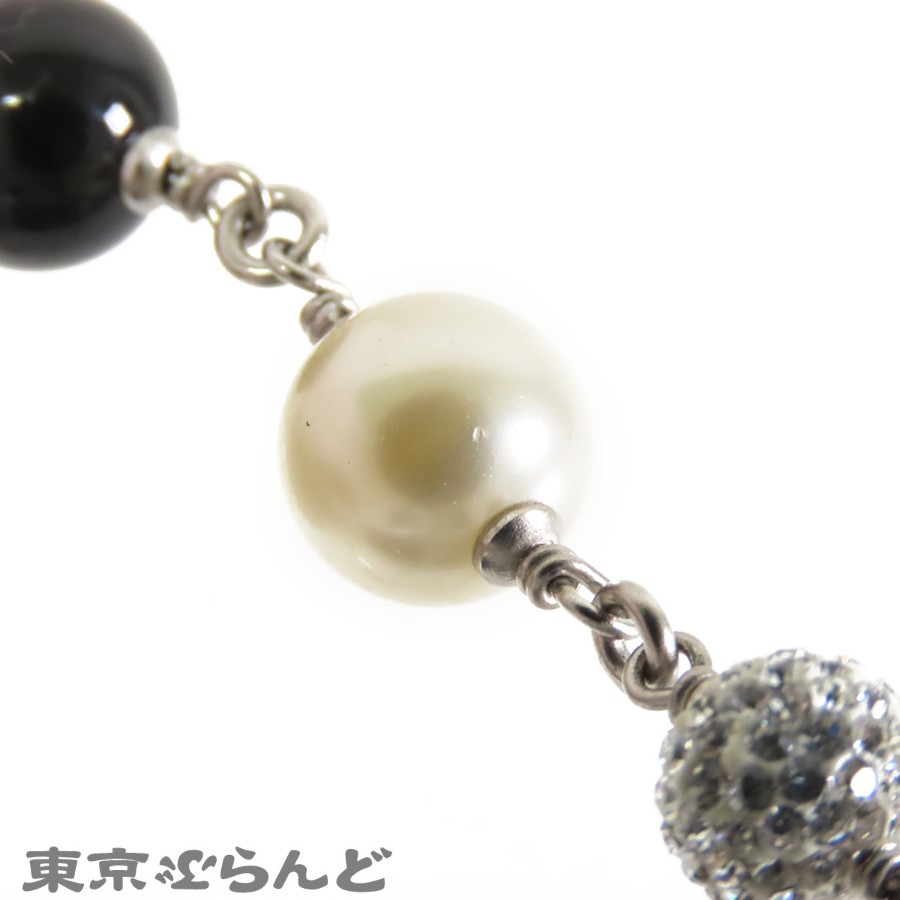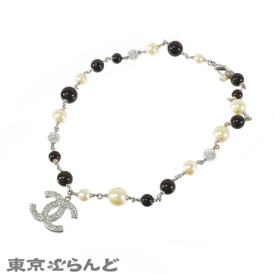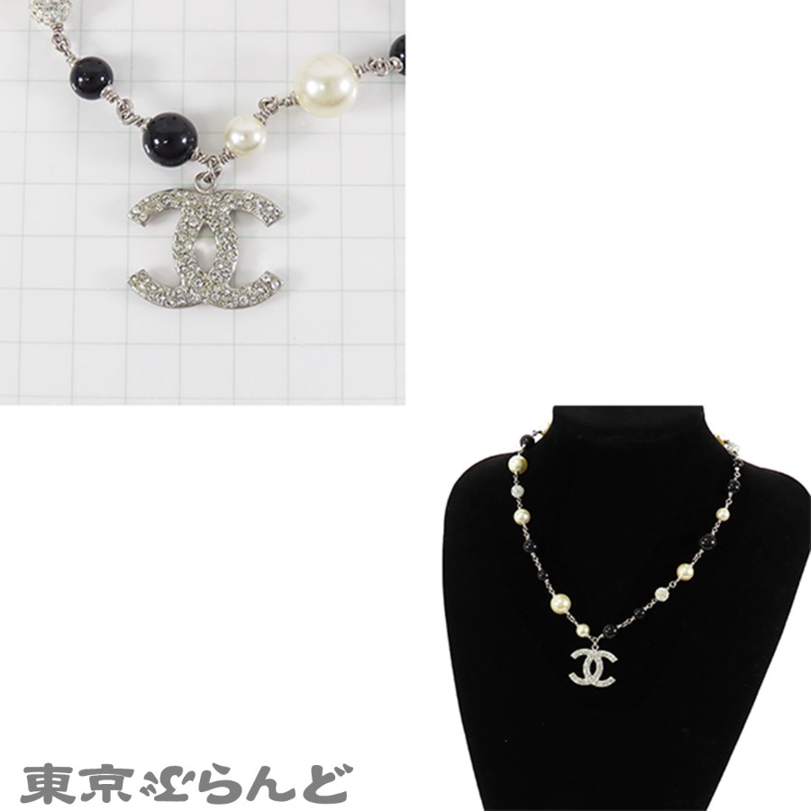 Chanel Coco Mark Necklace, Silver x Black, Costume Pearl, Rhinestone, Metal, B11P, Women's