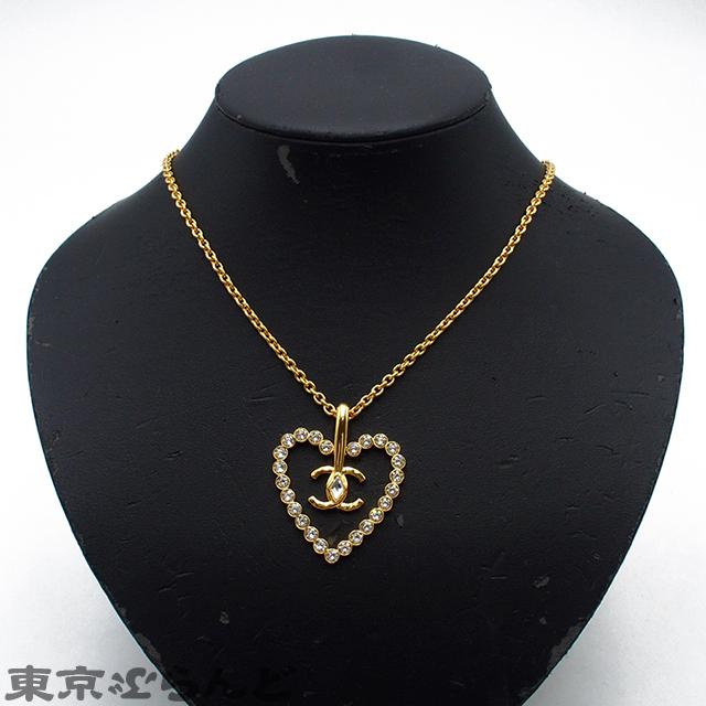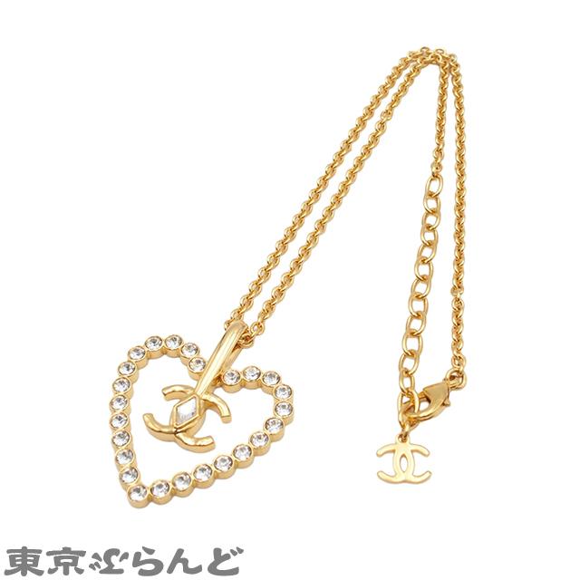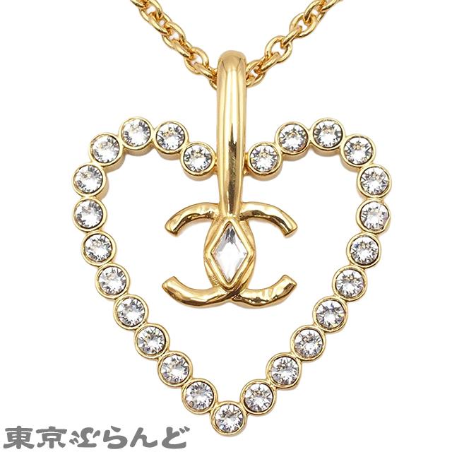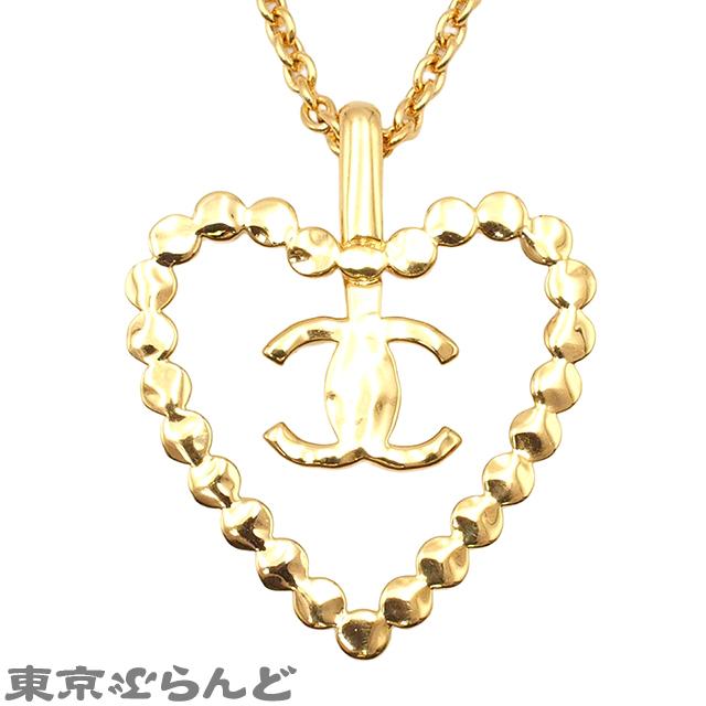 CHANEL Necklace, Gold Metal, Heart, COCOmark Beads, Costume Jewelry, L23C, Women's