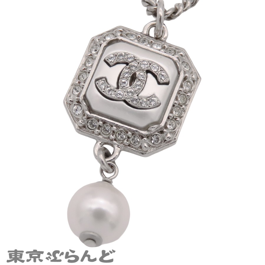 Chanel CHANEL Necklace Silver Metal Faux Pearl Rhinestone Coco Mark C22C Women's