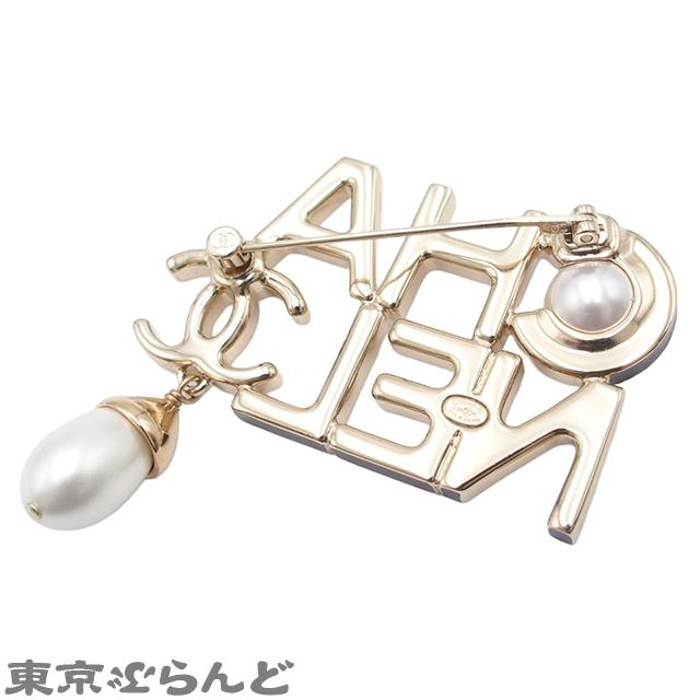 CHANEL Logo Light Gold Metal Faux Pearl COCOmark A22K Brooch for Women