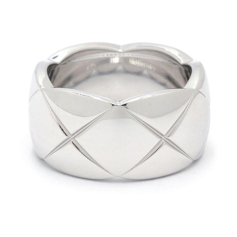 Chanel COCO CRUSH Collection Ring, Large Model #56, Size 16, J10863, 18K White Gold, Diamond Matelassé Lattice Pattern, Approximately 18.2g, Pre-owned