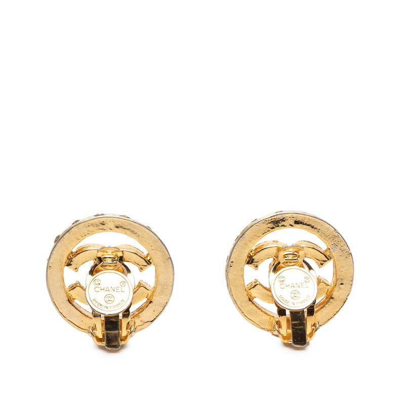 Chanel COCOmark Earrings, Gold Plated, RhinestoneCHANELBrand: CHANELTarget: Women'sColor: GoldSeries: COCOmarkMaterial: Plated/RhinestoneSize: Approx. 26.0mm x 26.0mmSize cannot be changedAccessories: NoneCondition:Condition Rank: ABOverall: Scratches, slight plating peeling