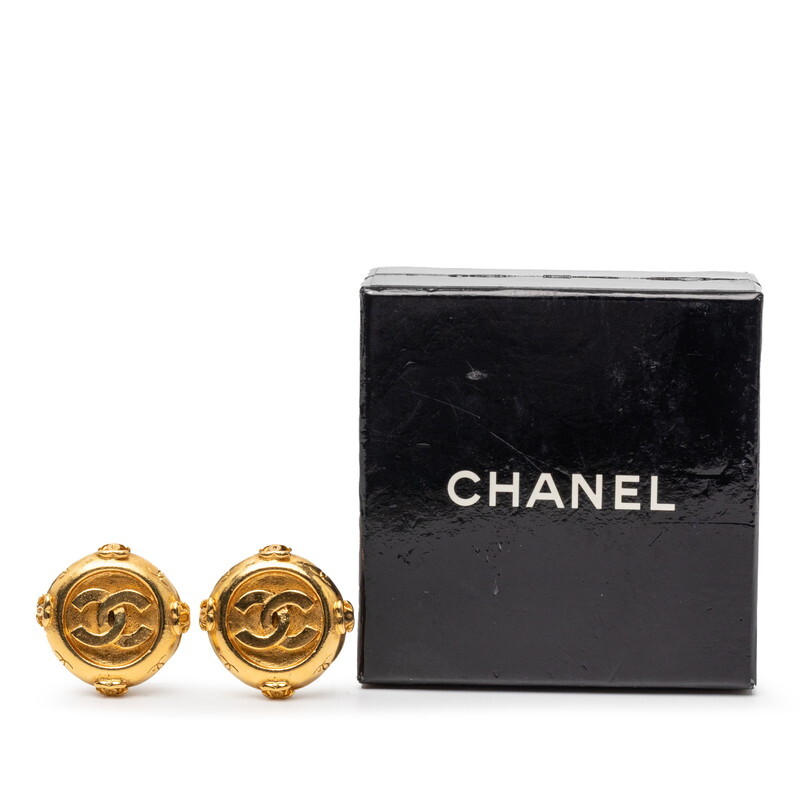Chanel COCOmark Earrings, Gold PlatedCHANELBrand: CHANELTarget: Women'sColor: GoldLine: COCOmarkMaterial: PlatedSize: Approx. 25.6mm x 25.8mmSize cannot be changedAccessories: Storage boxCondition:Condition Rank: ABOverall: Slight verdigris, slight looseness in metal fittings