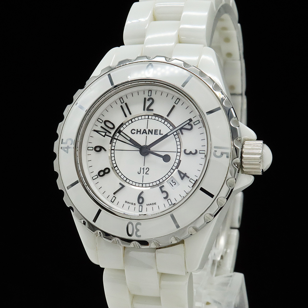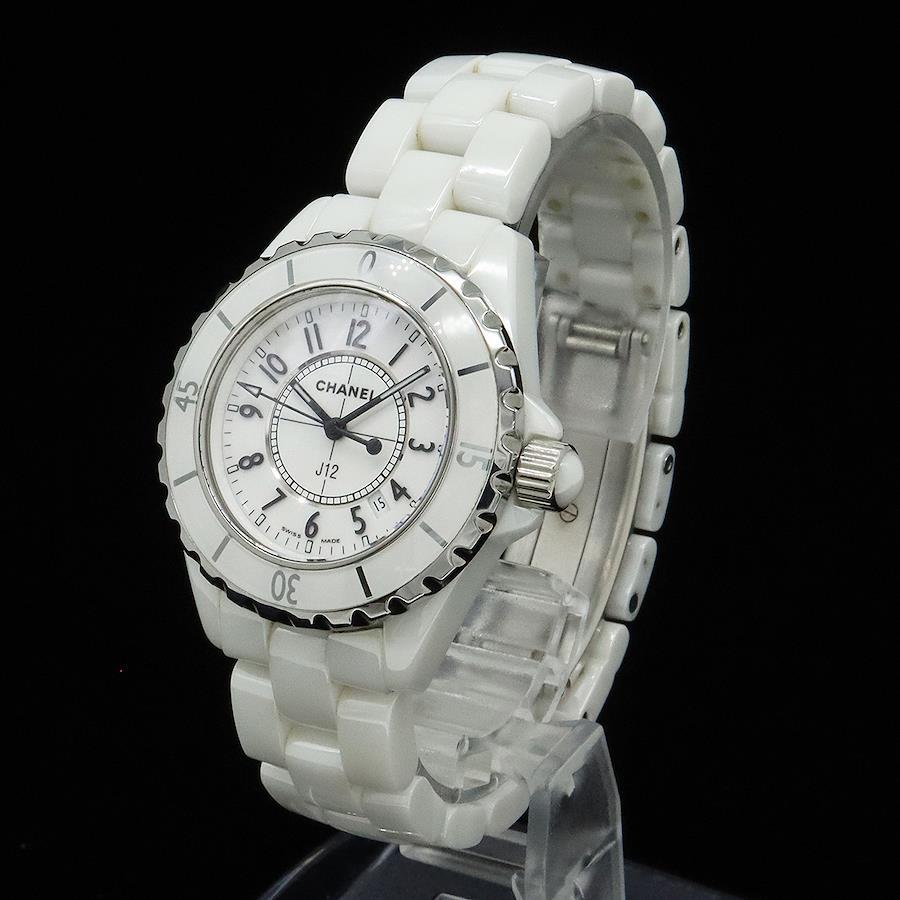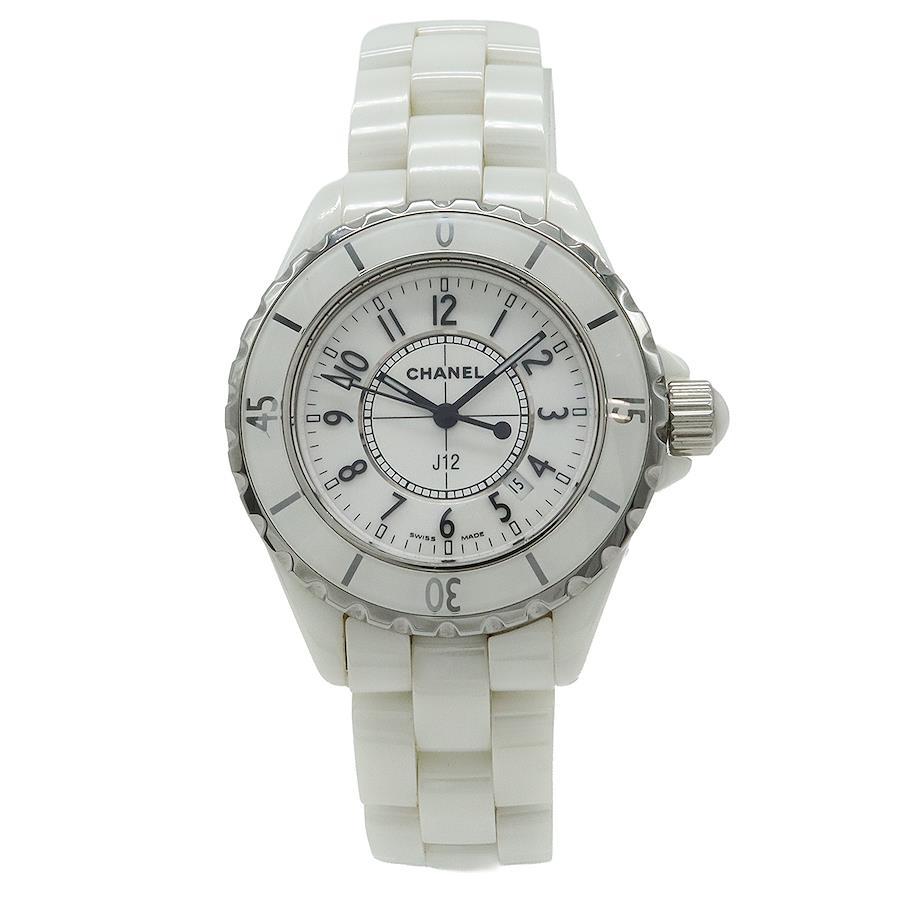 【コメント】シャネルの大人気モデル、J12でございます。ホワイトカラーは清潔感があり、セラミックはキズがつきにくいのが特徴で、オススメのモデル。