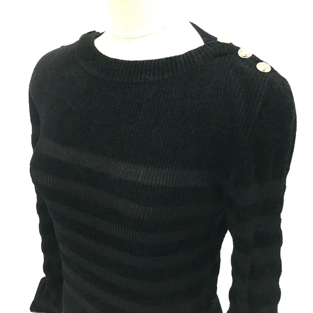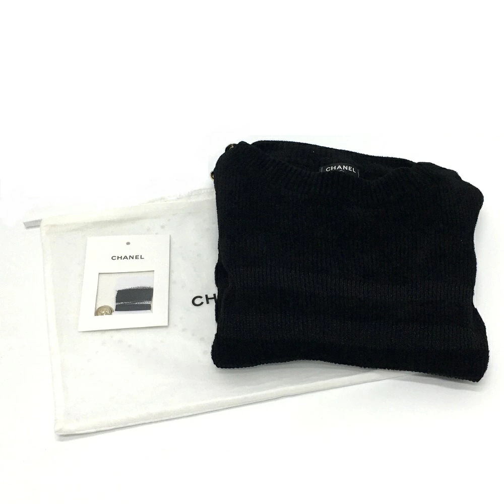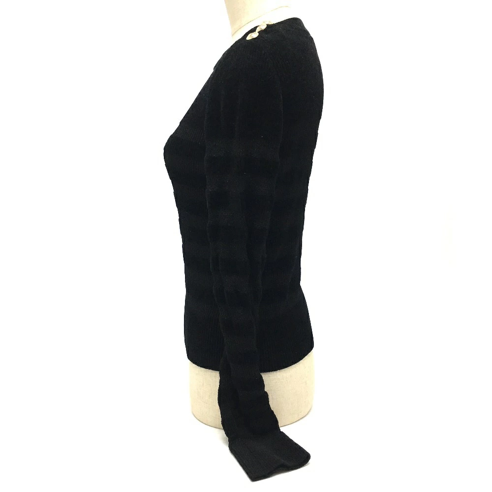 Pre-owned CHANEL P65620 Striped Pullover Knit Top, Long Sleeve, Rayon/Nylon, Women's, Black, Like New