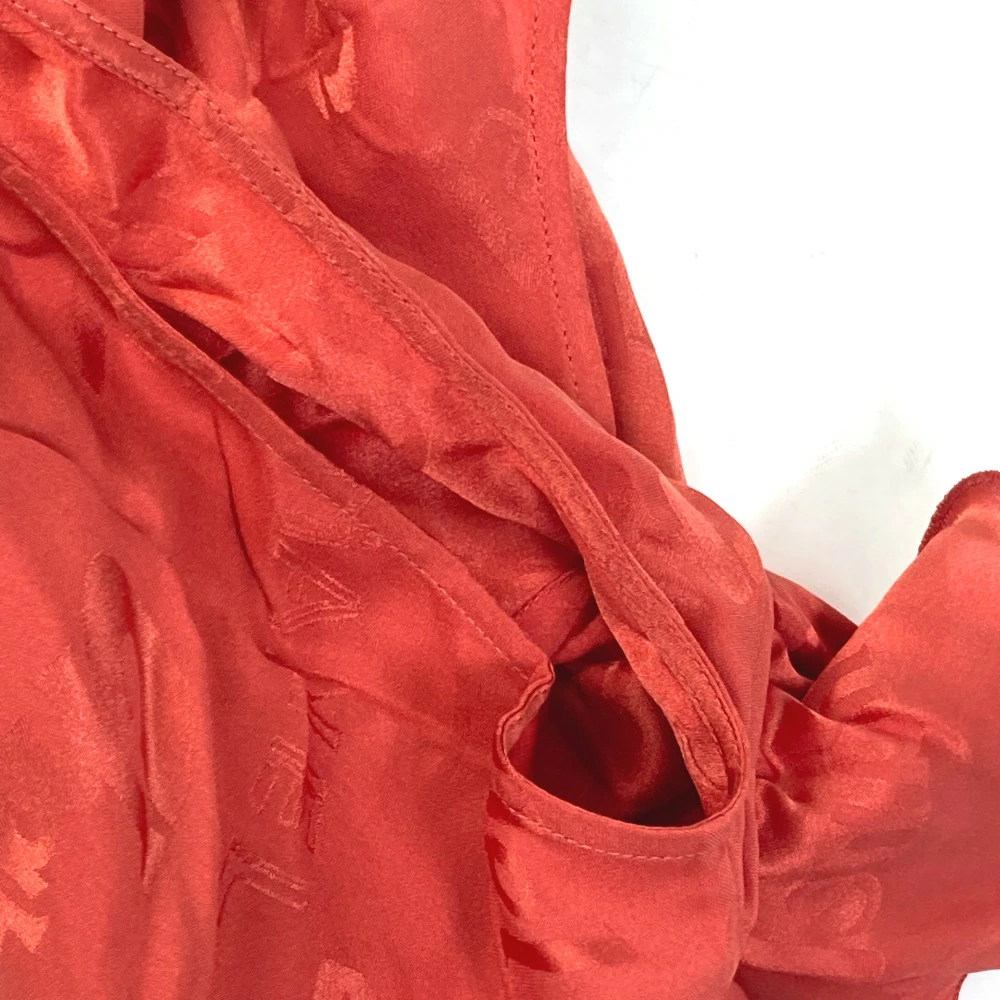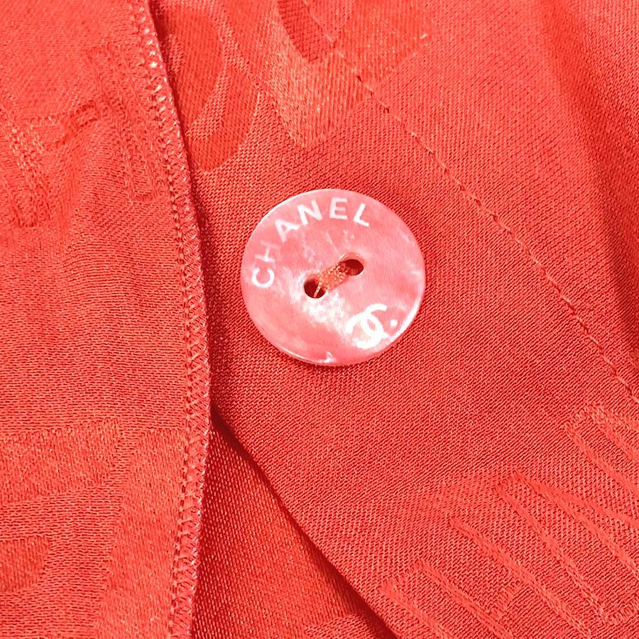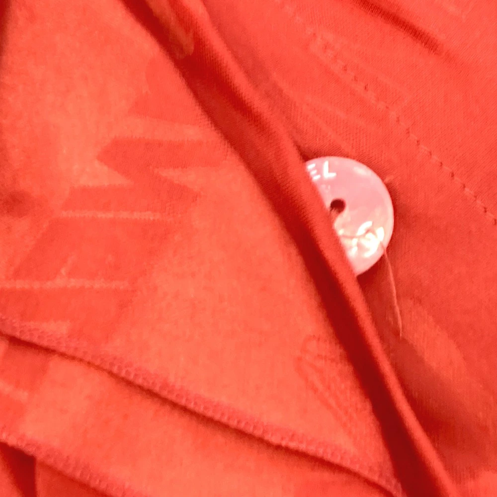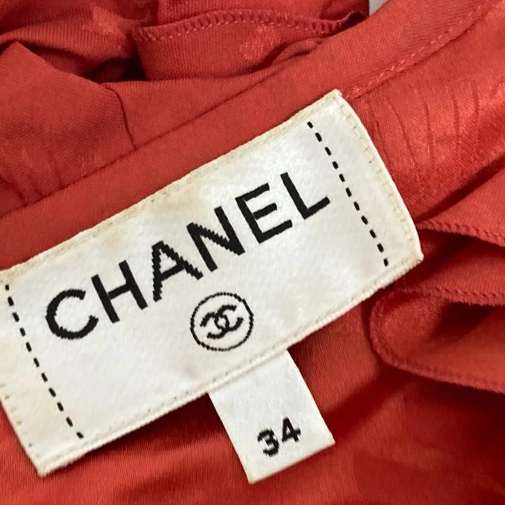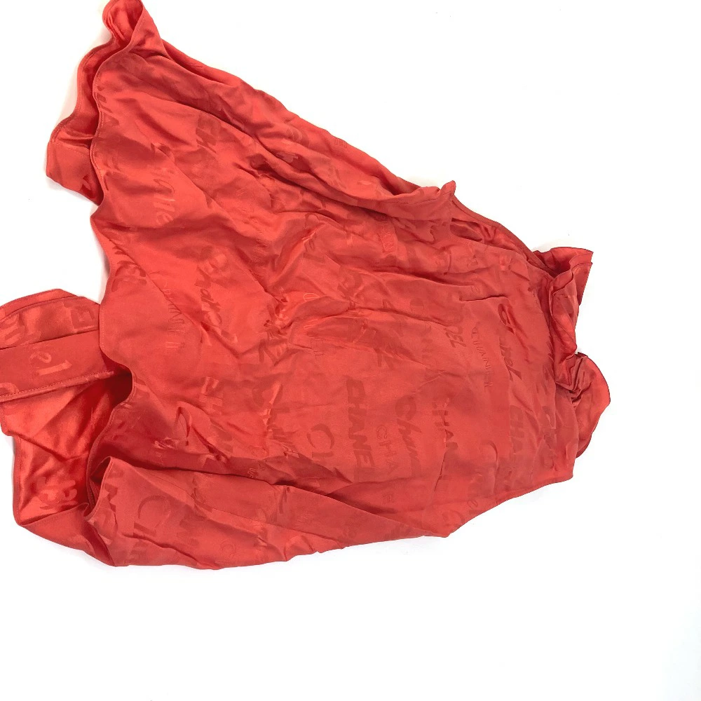 Pre-owned CHANEL P72306 logo all-over ruffle sleeveless top, size 22, silk, red, for women.