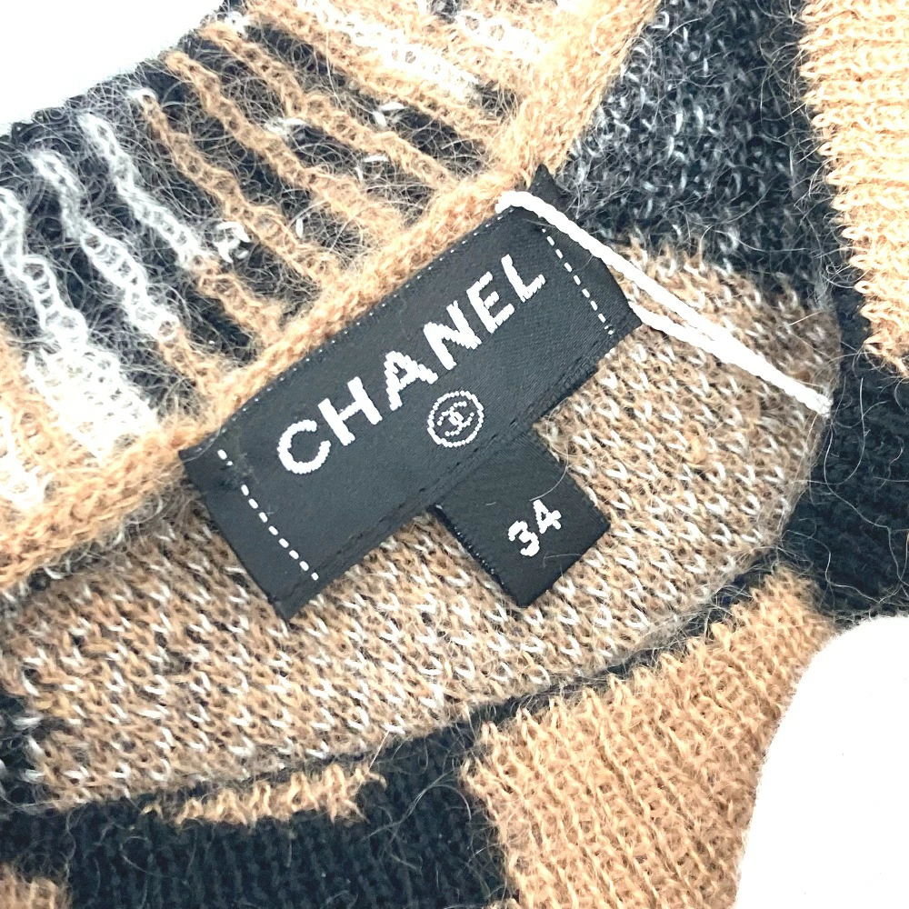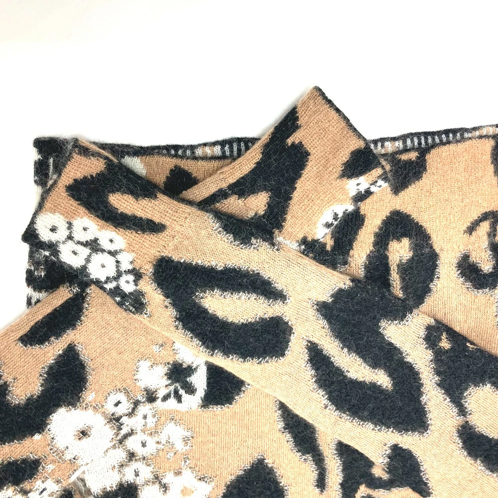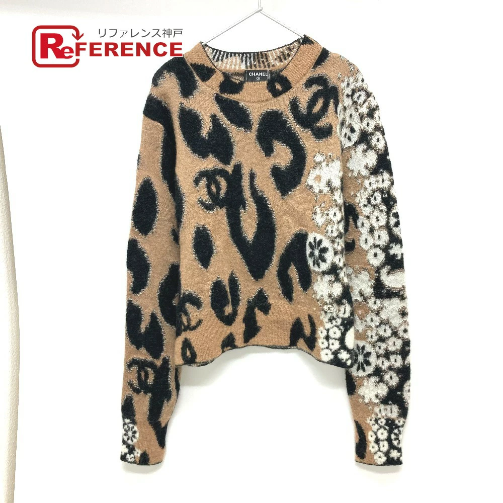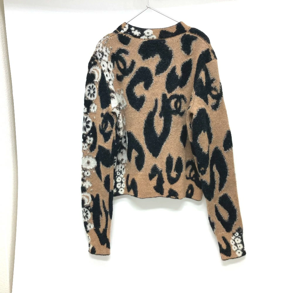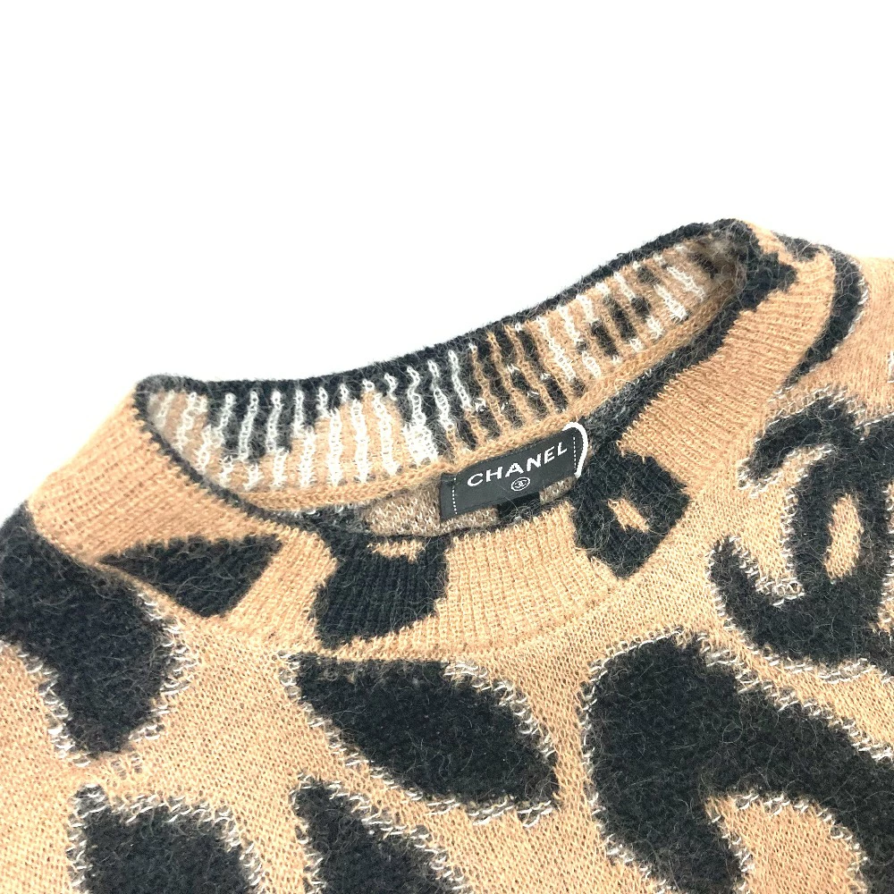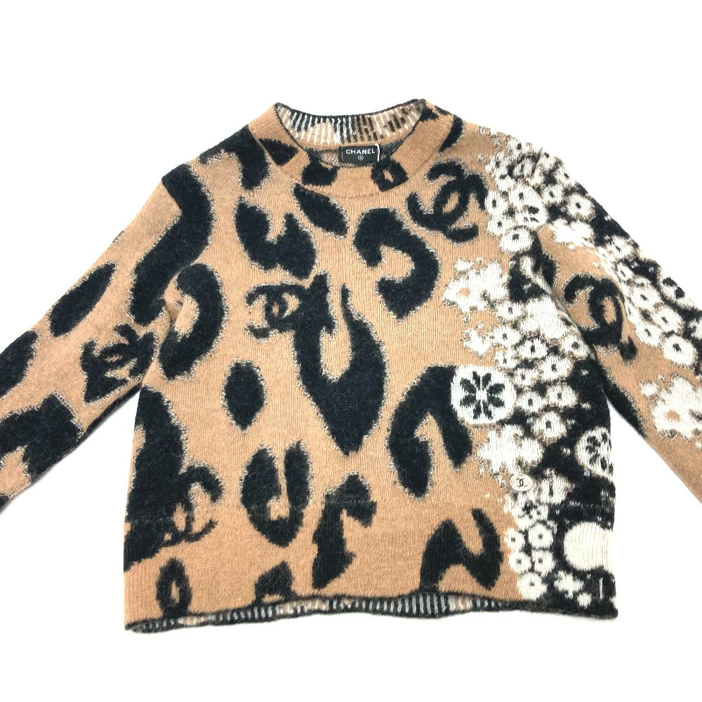 CHANEL P75361 23A Coco Mark Leopard Print Knit Sweater, Long Sleeve, Cashmere, Women's, Brown, Unused [Pre-owned]