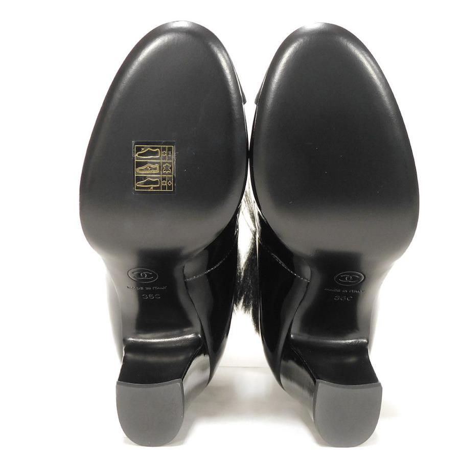 つま先にシャネルのCCロゴがあしらわれた「メリージェーン パテント ファー」パンプスです。