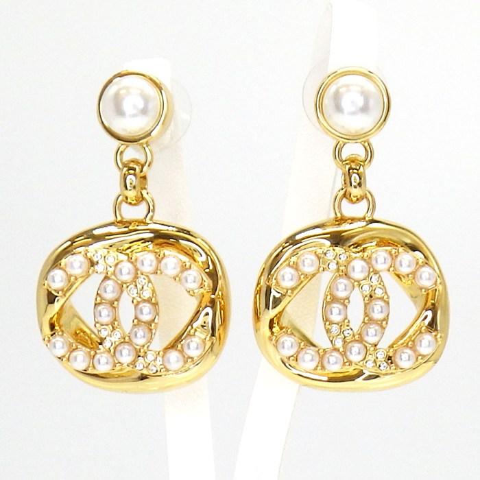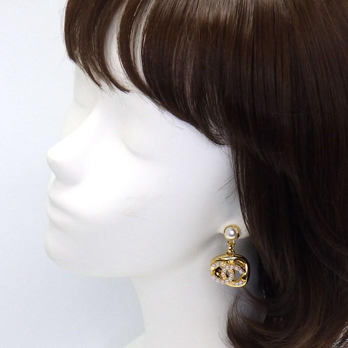 ■商品名CHANEL ピアス ココマーク 2024年製 イミテーションパール ラインストーン GP 【中古】