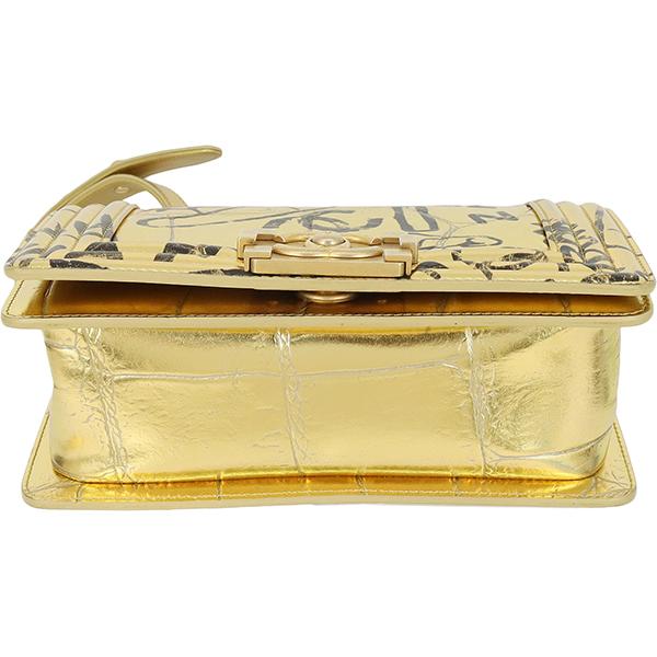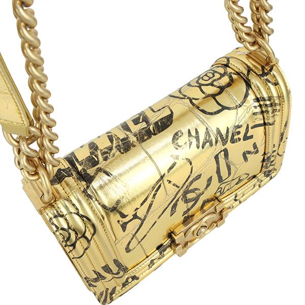 【ブランド】CHANEL シャネル------------------------【商品名】スモール ハンドバッグ------------------------【ライン】BOY CHANEL 20 GRAFFITIボーイシャネル 20 グラフィティ------------------------【型 番】A67085------------------------【製造番号】28番台8桁(2019年製)------------------------【製造国】イタリア------------------------【カラー】[全体] ゴールド × ブラック[金具] アンティークゴールド------------------------【素 材】[外側] クロコ型押しレザー[内側] レザー------------------------【サイズ】約:横20cm × 高さ13cm × マチ8.5cmショルダー長さ(ダブル):約64cmショルダー長さ(シングル):約111cm------------------------【重 量】約690g------------------------【機 能】プッシュロック開閉オープンポケット×1------------------------【収納可能アイテム】ミニ財布や小物スマートフォン------------------------【付属品】ギャランティカードシリアルシール------------------------商品ランク 【A】 (中古美品 多少の使用感・ダメージ等はあるが、比較的奇麗な商品)