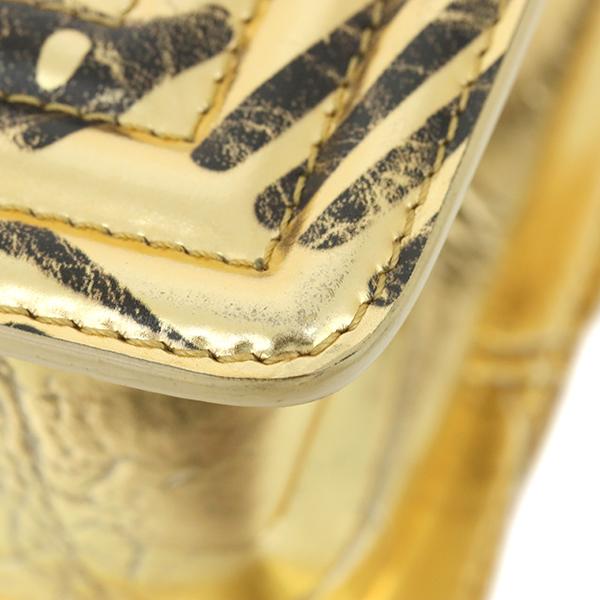 【外 側】・金具全体に薄いスレキズや打痕が少し有り・角や縁に少しスレ有り・ストラップ付け根に製品タグと思われる糸の残り有り・レザー表面に薄い押し傷が僅かに有り